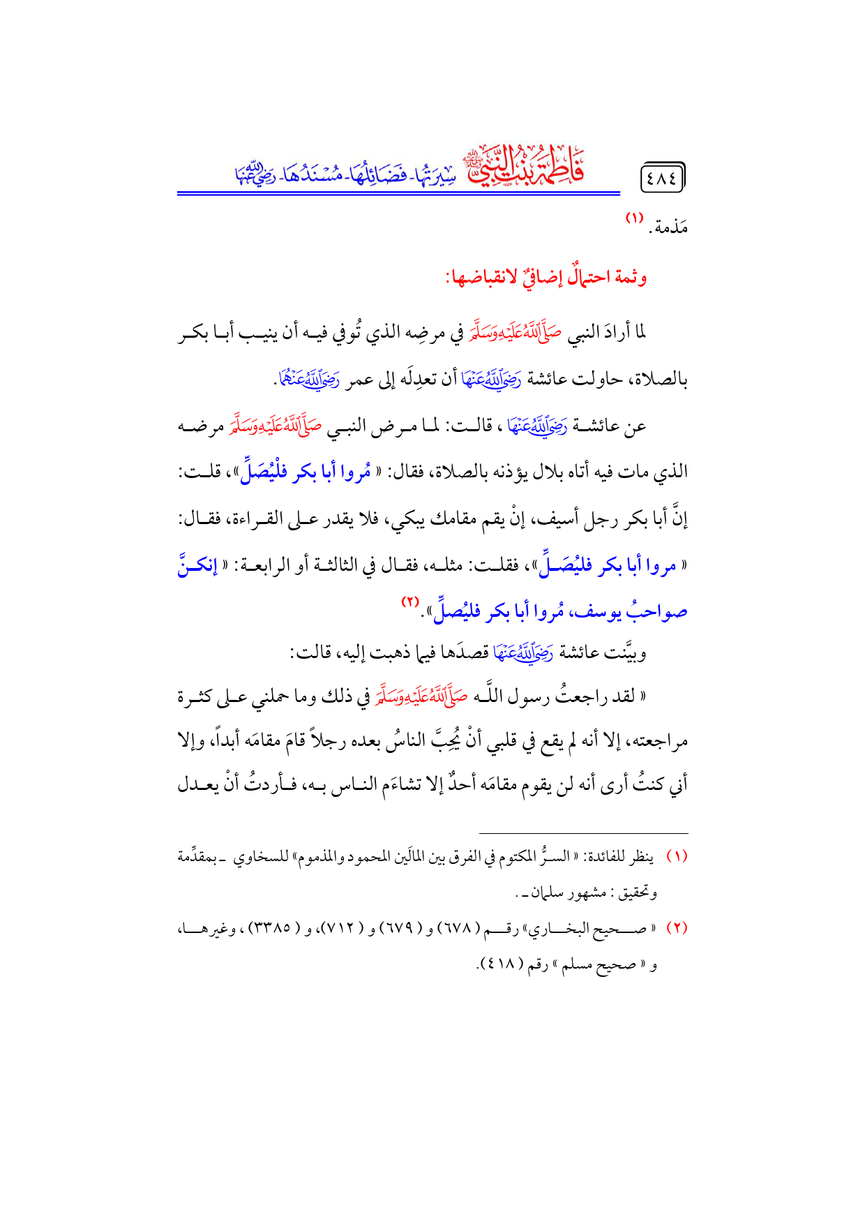 (¬٢) «صحيح البخاري» رقم (٦٧٨) و (٦٧٩) و (٧١٢)، و (٣٣٨٥)، وغيرها، ... و «صحيح مسلم» رقم (٤١٨).