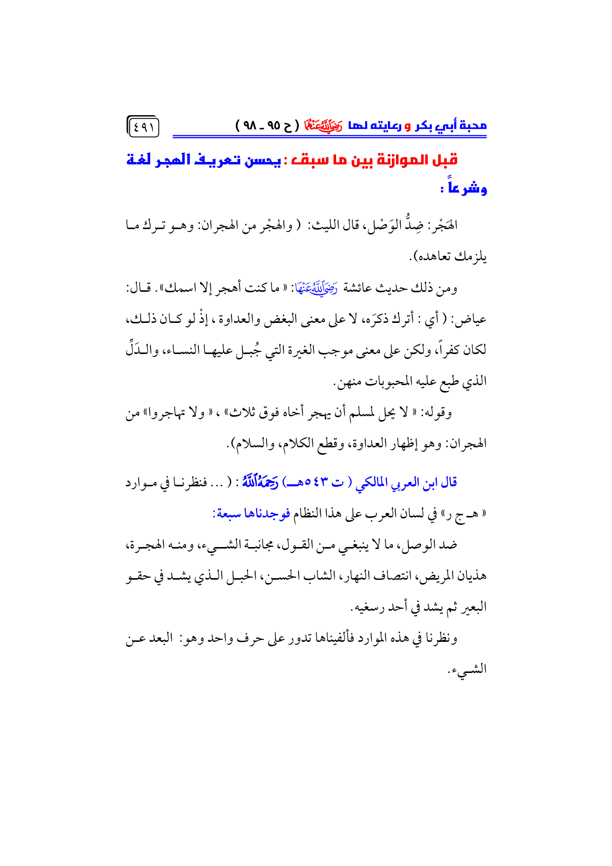 قبل الموازنة بين ما سبق: يحسن تعريف الهجر لغة وشرعاً: