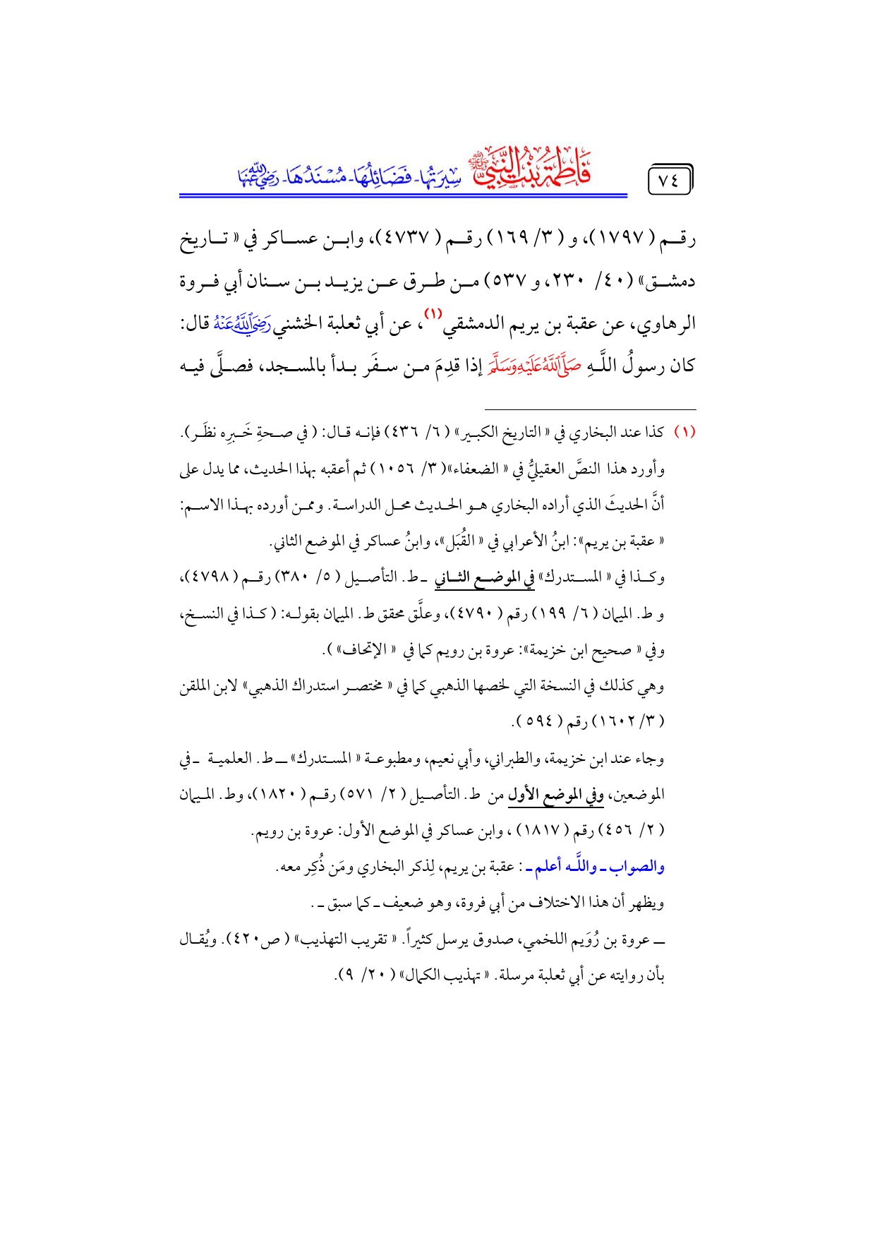 كتاب فاطمة بنت النبي - صلى الله عليه وسلم - سيرتها، فضائلها، مسندها - رضي الله عنها - (اسم الجزء: 4)