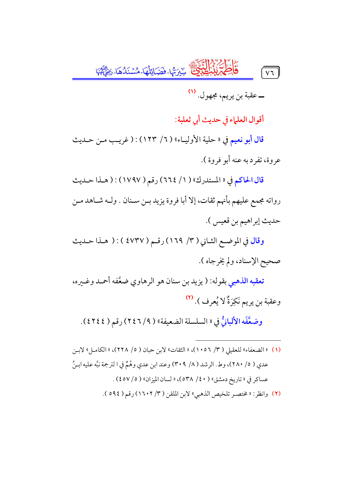 كتاب فاطمة بنت النبي - صلى الله عليه وسلم - سيرتها، فضائلها، مسندها - رضي الله عنها - (اسم الجزء: 4)