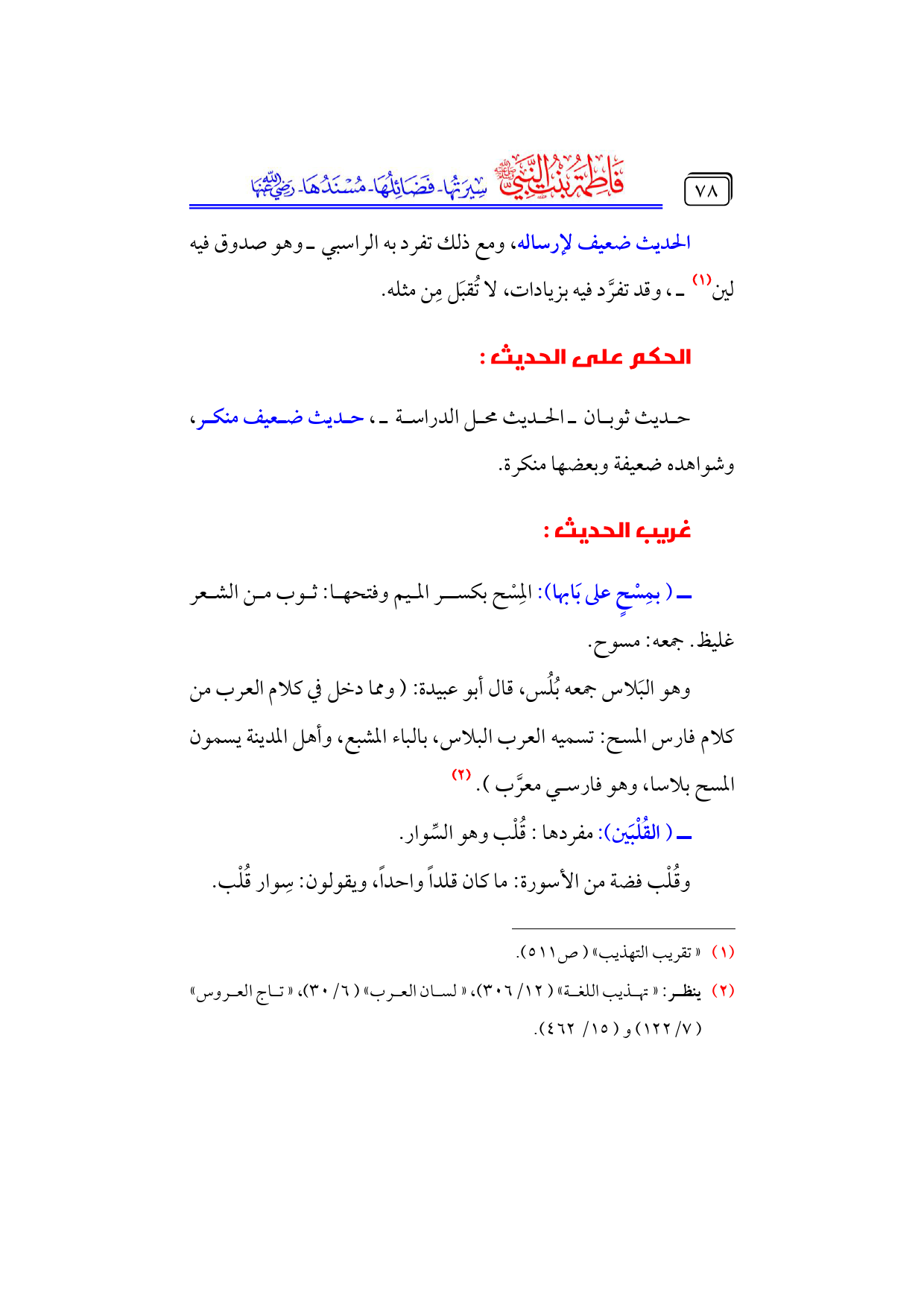 كتاب فاطمة بنت النبي - صلى الله عليه وسلم - سيرتها، فضائلها، مسندها - رضي الله عنها - (اسم الجزء: 4)