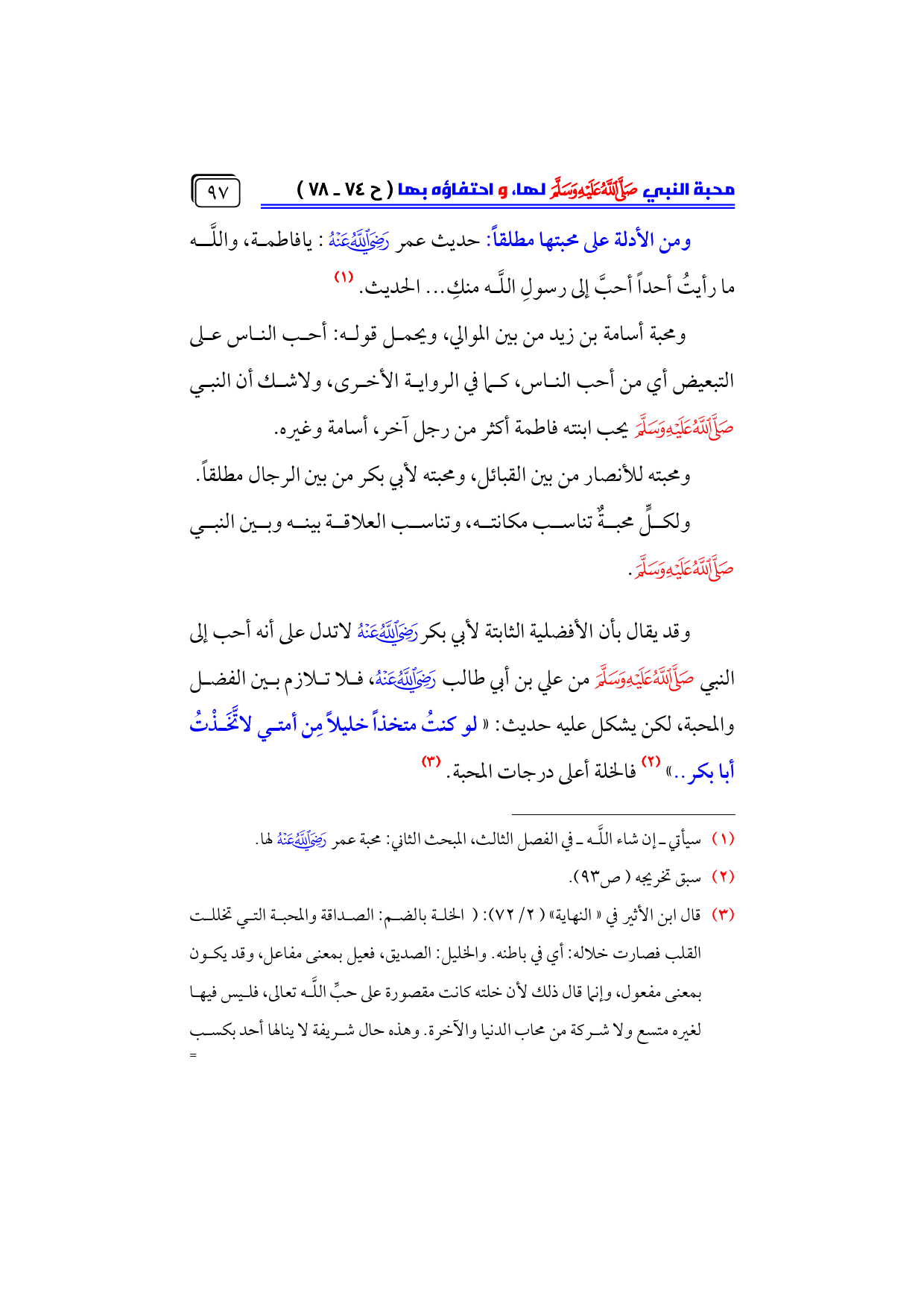 (¬١) سيأتي ـ إن شاء اللَّه ـ في الفصل الثالث، المبحث الثاني: محبة عمر - رضي الله عنه - لها.