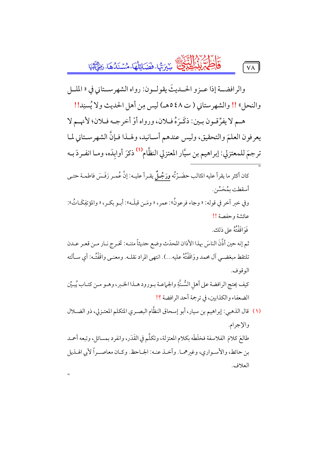(¬١) قال الذهبي: إبراهيم بن سيار، أبو إسحاق النظَّام البصري المتكلم المعتزلي، ذو الضلال والإجرام.