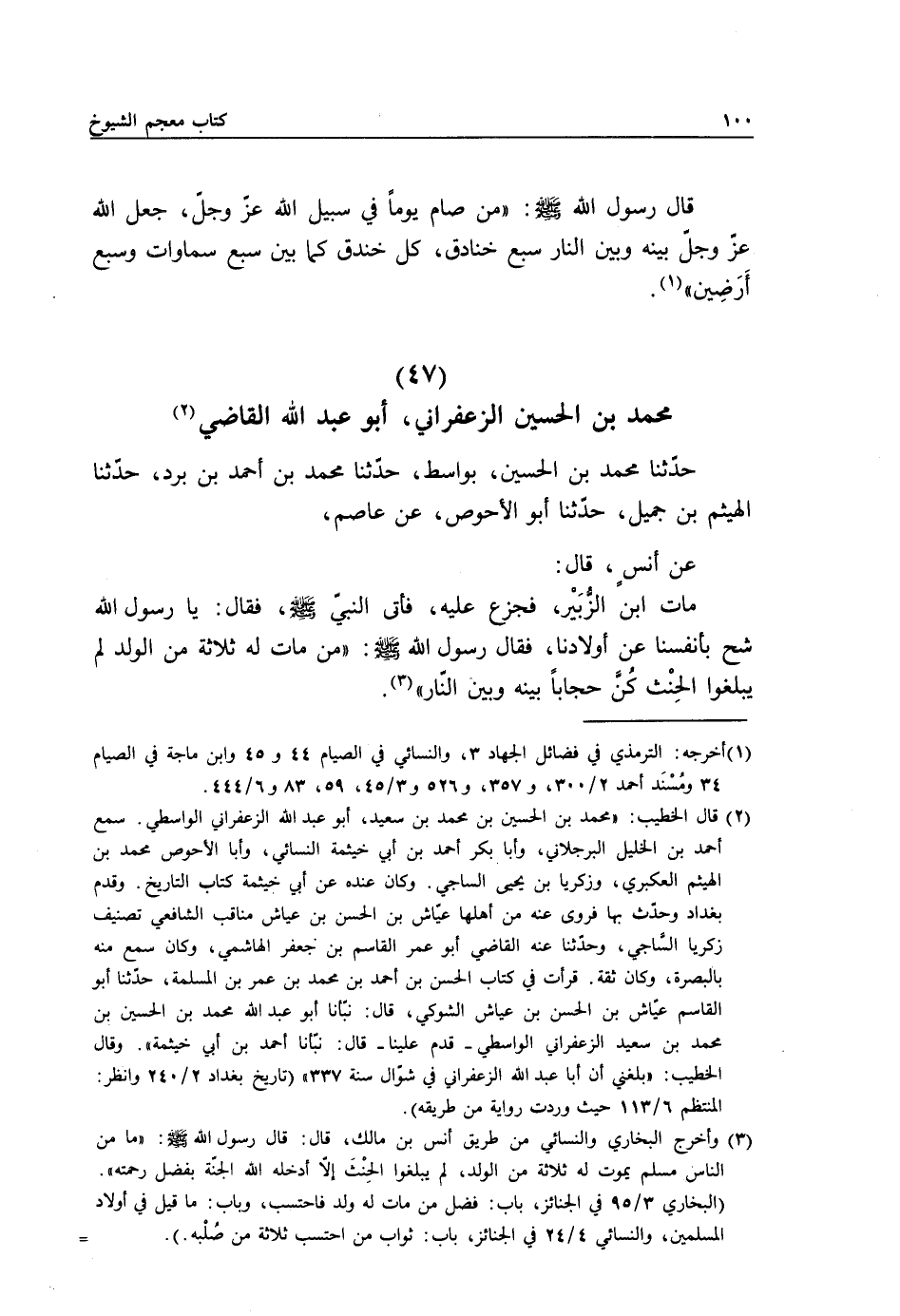 §مُحَمَّدُ بْنُ الْحُسَيْنِ الزَّعْفَرَانِيُّ أَبُو عَبْدِ اللَّهِ الْقَاضِي