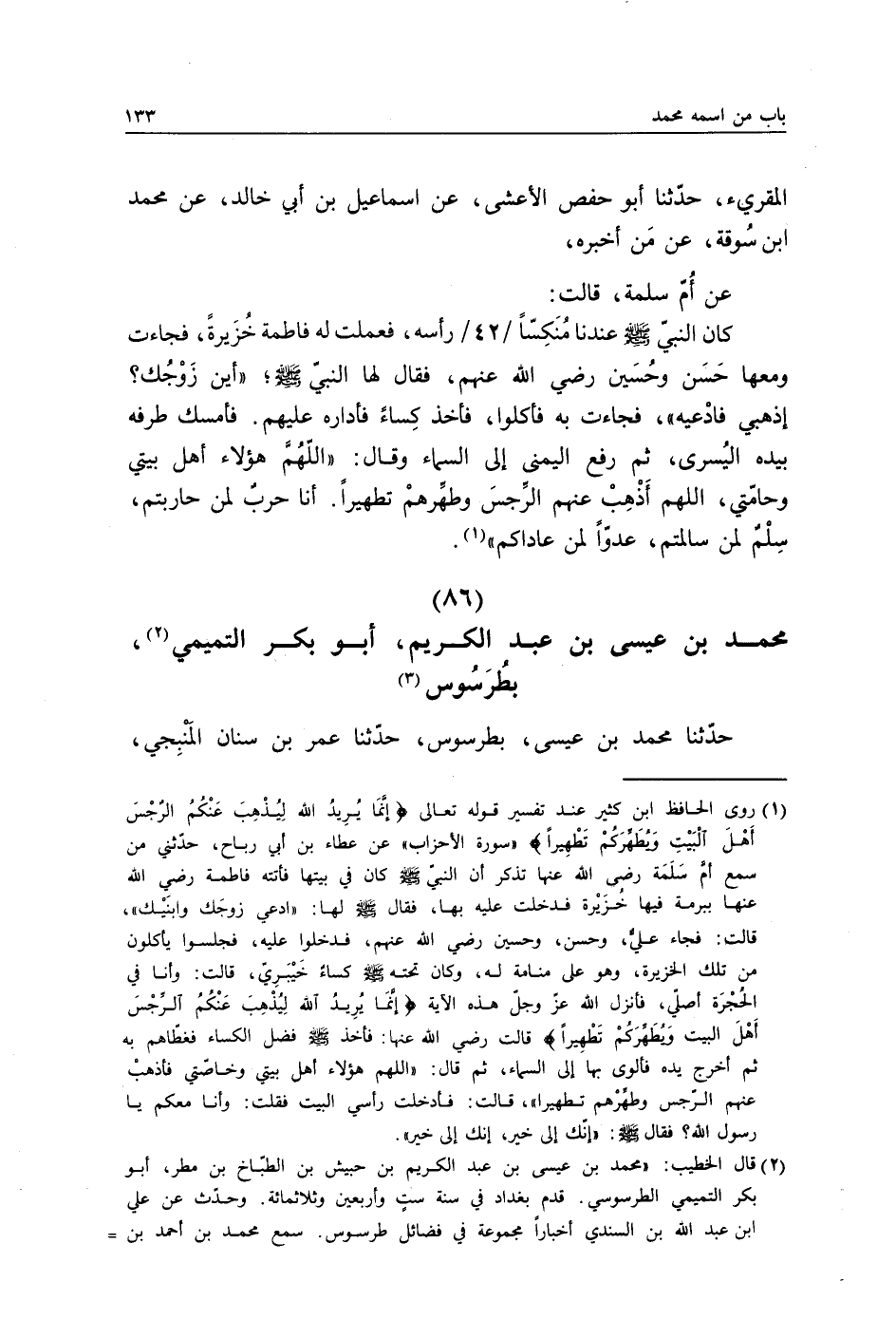 §مُحَمَّدُ بْنُ عِيسَى بْنِ عَبْدِ الْكَرِيمِ أَبُو بَكْرٍ التَّمِيمِيُّ بِطَرَسُوسَ