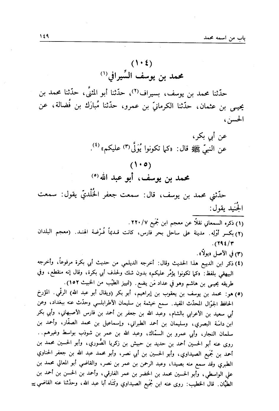 حَدَّثَنَا مُحَمَّدُ بْنُ يُوسُفَ بِسِيرَافَ، حَدَّثَنَا أَبُو الْمُثَنَّى، حَدَّثَنَا مُحَمَّدُ بْنُ يَحْيَى بْنِ عُثْمَانَ، حَدَّثَنَا الْكَرْمَانِيُّ بْنُ عَمْرٍو، حَدَّثَنَا مُبَارَكُ بْنُ فَضَالَةَ، عَنِ الْحَسَنِ، عَنْ أَبِي بَكْرٍ، عَنِ النَّبِيِّ صَلَّى اللهُ عَلَيْهِ وَسَلَّمَ قَالَ§: «كَمَا تَكُونُوا يُوَلَّى عَلَيْكُمْ»