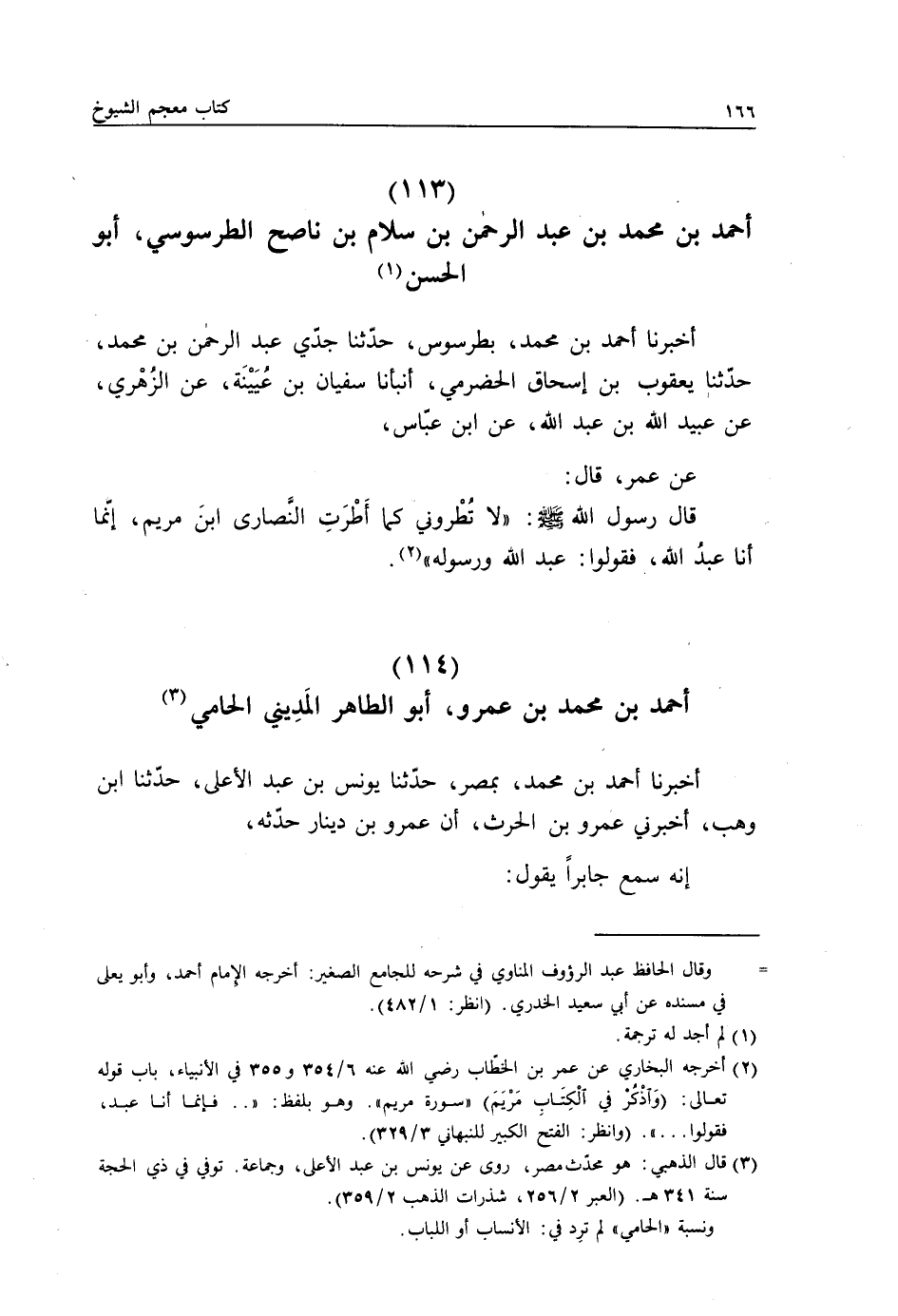 أَخْبَرَنَا أَحْمَدُ بْنُ مُحَمَّدٍ بِطَرَسُوسَ، حَدَّثَنَا جَدِّي عَبْدُ الرَّحْمَنِ بْنُ مُحَمَّدٍ، حَدَّثَنَا يَعْقُوبُ بْنُ إِسْحَاقَ الْحَضْرَمِيُّ، أَنْبَأَنَا سُفْيَانُ بْنُ عُيَيْنَةَ، عَنِ الزُّهْرِيِّ، عَنْ عُبَيْدِ اللَّهِ بْنِ عَبْدِ اللَّهِ، عَنِ ابْنِ عَبَّاسٍ، عَنْ عُمَرَ، قَالَ: قَالَ رَسُولُ اللَّهِ صَلَّى اللهُ عَلَيْهِ وَسَلَّمَ: " §لَا تُطْرُونِي كَمَا أَطْرَتِ النَّصَارَى ابْنَ مَرْيَمَ، إِنَّمَا أَنَا عَبْدُ اللَّهِ، فَقُولُوا: عَبْدُ اللَّهِ وَرَسُولُهُ "