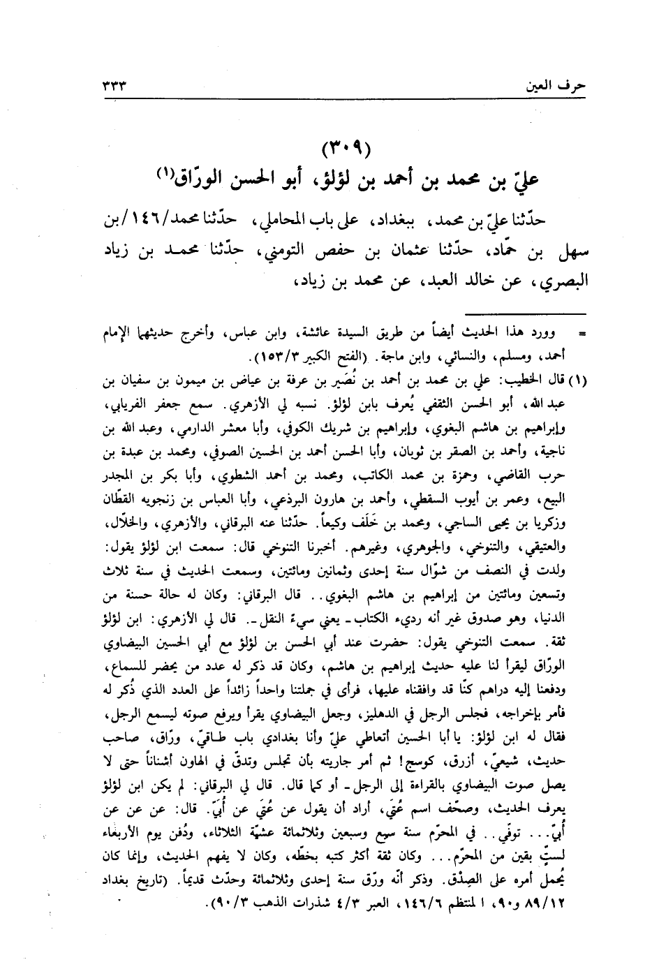 §عَلِيُّ بْنُ مُحَمَّدِ بْنِ أَحْمَدَ بْنِ لُؤْلُؤٍ أَبُو الْحَسَنِ الْوَرَّاقُ