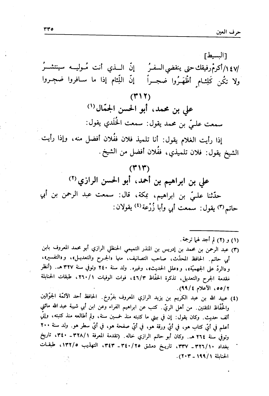 حَدَّثَنَا عَلِيُّ بْنُ إِبْرَاهِيمَ بِمَكَّةَ، قَالَ سَمِعْتُ عَبْدَ الرَّحْمَنِ بْنَ أَبِي حَاتِمٍ، يَقُولُ: سَمِعْتُ أَبِي وَأَبَا زُرْعَةَ " يَقُولَانِ -[336]-: «§لَا يُفْلِحُ صَاحِبُ كَلَامٍ أَبَدًا»
