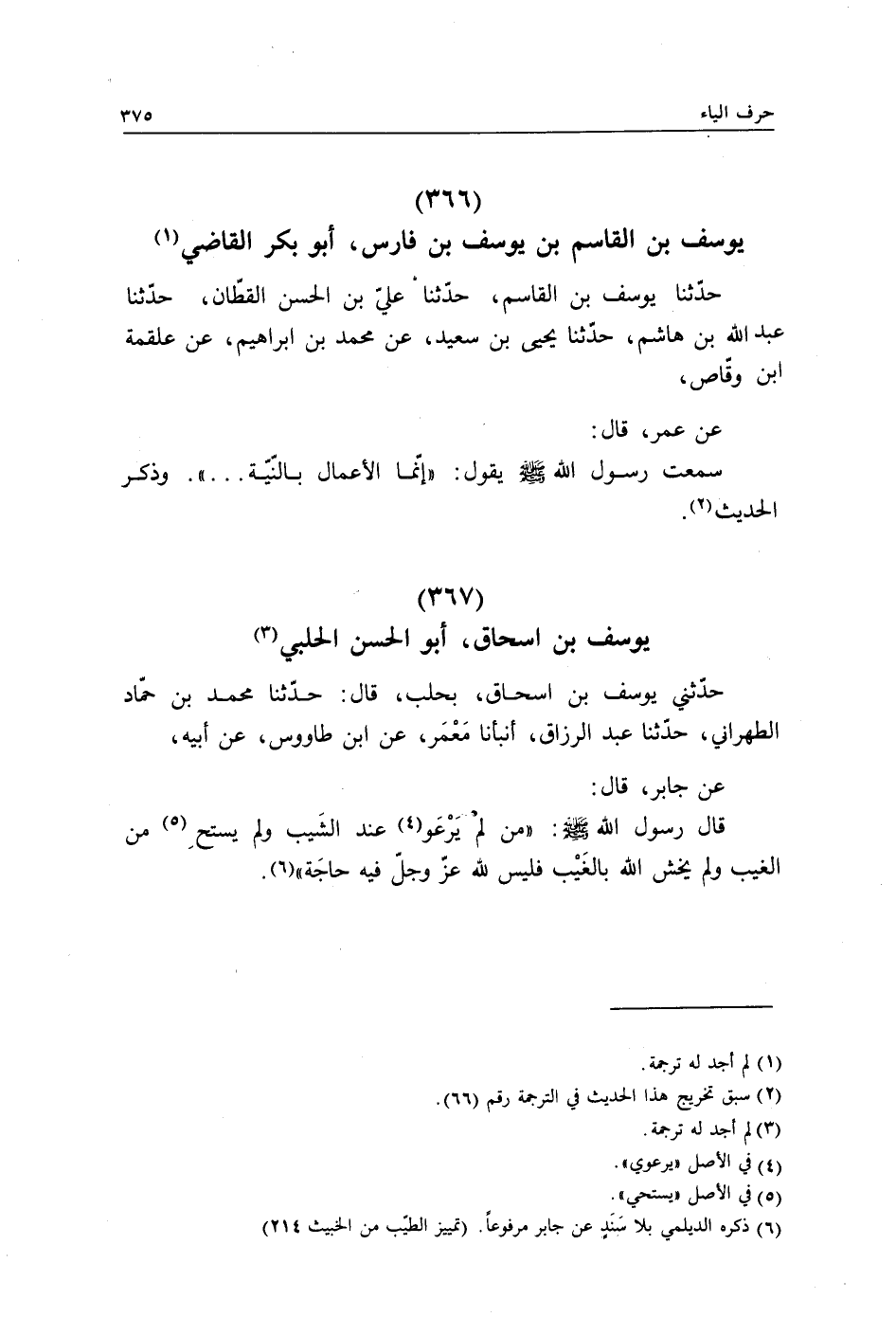حَدَّثَنَا يُوسُفُ بْنُ الْقَاسِمِ، حَدَّثَنَا عَلِيُّ بْنُ الْحَسَنِ الْقَطَّانُ، حَدَّثَنَا عَبْدُ اللَّهِ بْنُ هَاشِمٍ، حَدَّثَنَا يَحْيَى بْنُ سَعِيدٍ، عَنْ مُحَمَّدِ بْنِ إِبْرَاهِيمَ، عَنْ عَلْقَمَةَ بْنِ وَقَّاصٍ، عَنْ عُمَرَ، قَالَ: سَمِعْتُ رَسُولَ اللَّهِ صَلَّى اللهُ عَلَيْهِ وَسَلَّمَ يَقُولُ: «إِنَّمَا §الْأَعْمَالُ بِالنِّيَّةِ» وَذَكَرَ الْحَدِيثَ