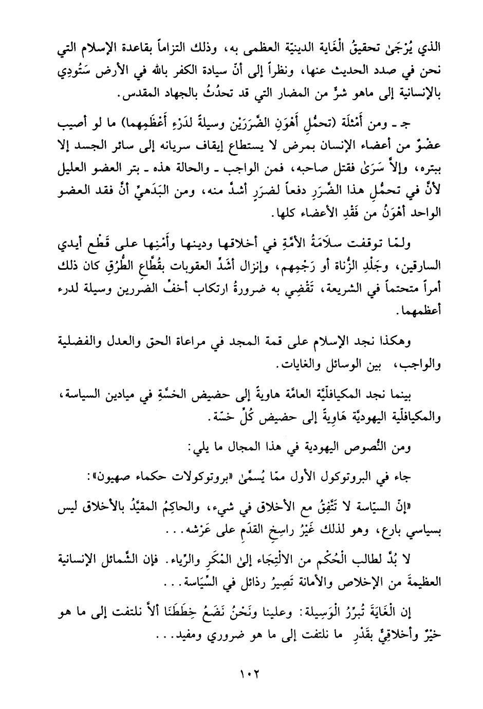 الذي يُرجى تحقيق الغاية الدينية العظمى به، وذلك التزامًا بقاعدة الإسلام التي نحن في صدد الحديث عنها، ونظرًا إلى أن سيادة الكفر بالله في الأرض ستؤدي بالإنسانية إلى ما هو شر من المضار التي قد تحدث بالجهاد المقدس.