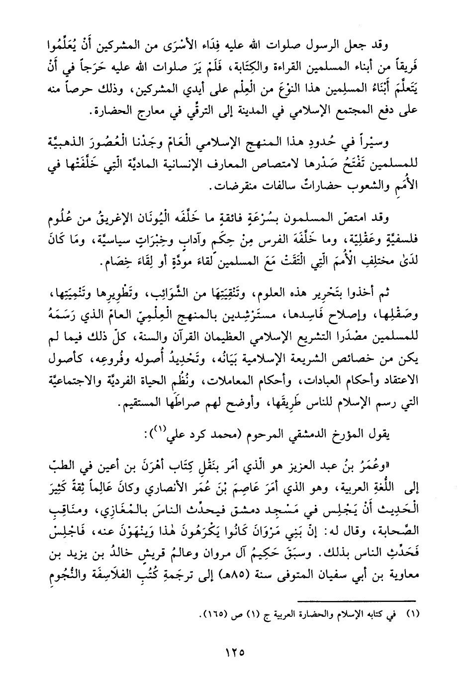1 في كتابه الإسلام والحضارة العربية ج1 ص165.
