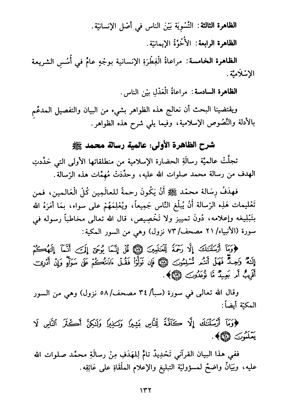 شرح الظاهرة الأولى: عالمية رسالة محمد صلى الله عليه وسلم