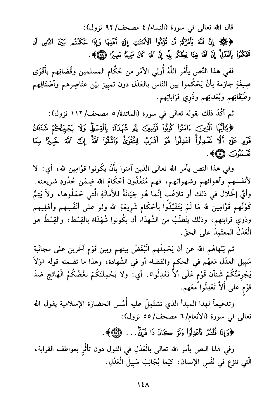 وفي هذا النص يأمر الله تعالى بالعدل في القول دون تأثر بعواطف القرابة، التي تنزع في نفس الإنسان، كيما يجانب سبيل العدل.
