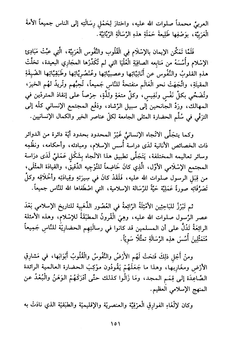 العربي محمدًا صلوات الله عليه، واختار لحمل رسالته إلى الناس جميعًا الأمة العربية، بوصفها طليعة حملة هذه الرسالة الربانية.