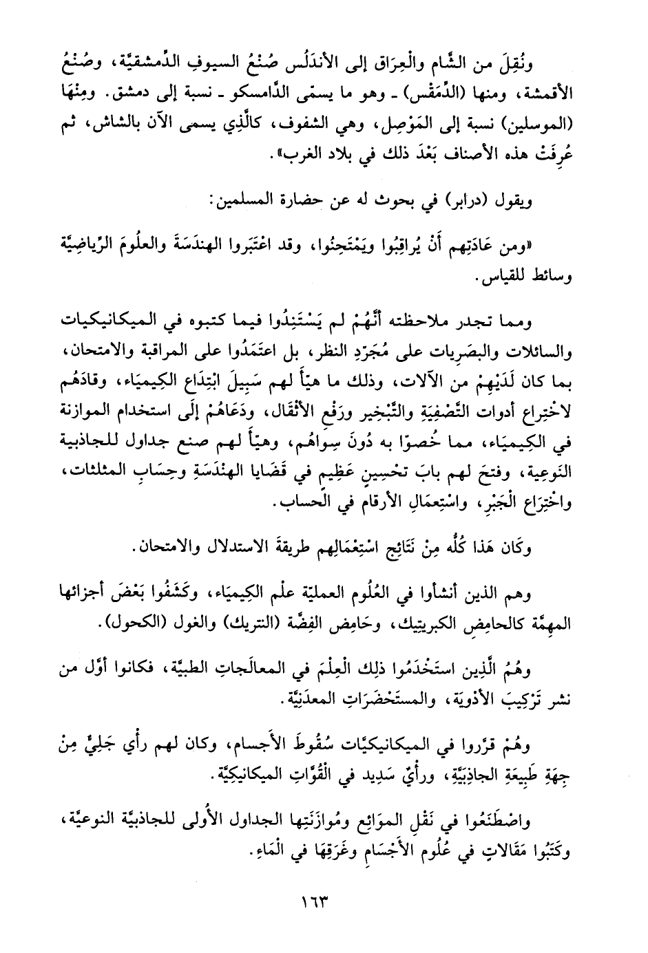 ويقول "درابر" في بحوث له عن حضارة المسلمين: