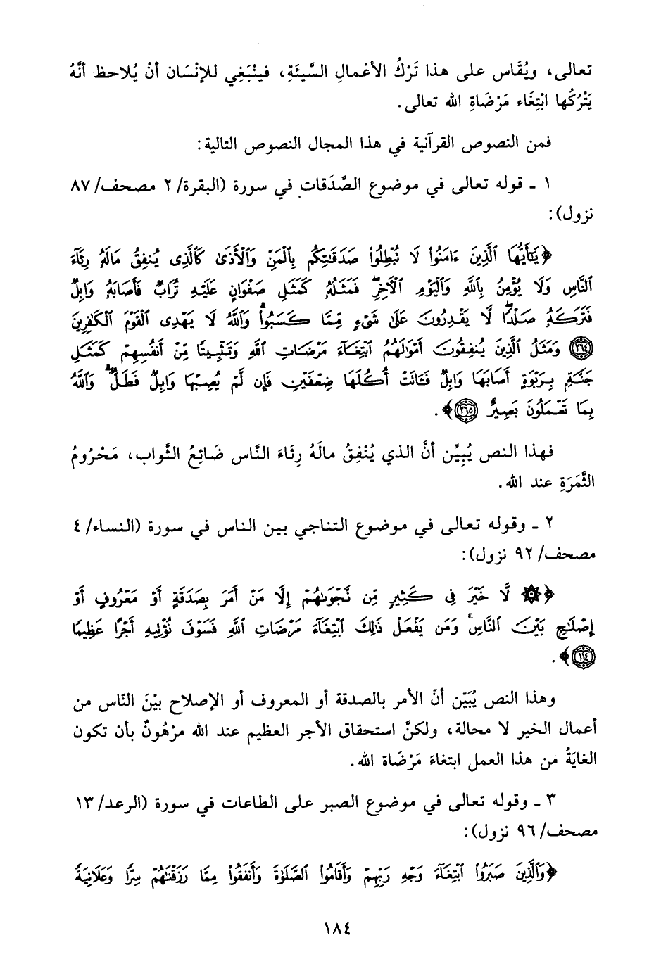 وهذا النص يبين أن الأمر بالصدقة أو المعروف أو الإصلاح بين الناس من أعمال الخير لا محالة، ولكن استحقاق الأجر العظيم عند الله مرهون بأن تكون الغاية من هذا العمل ابتغاء مرضاة الله.