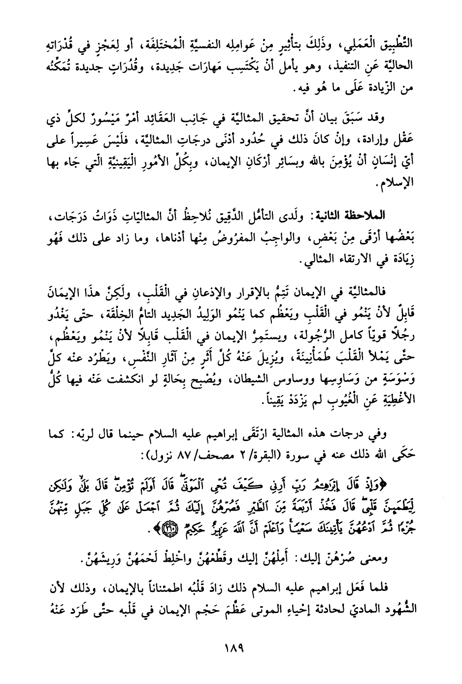 وفي درجات هذه المثالية ارتقى إبراهيم عليه السلام حينما قال لربه: كما حكى الله ذلك عنه في سورة "البقرة: 2 مصحف/ 87 نزول":