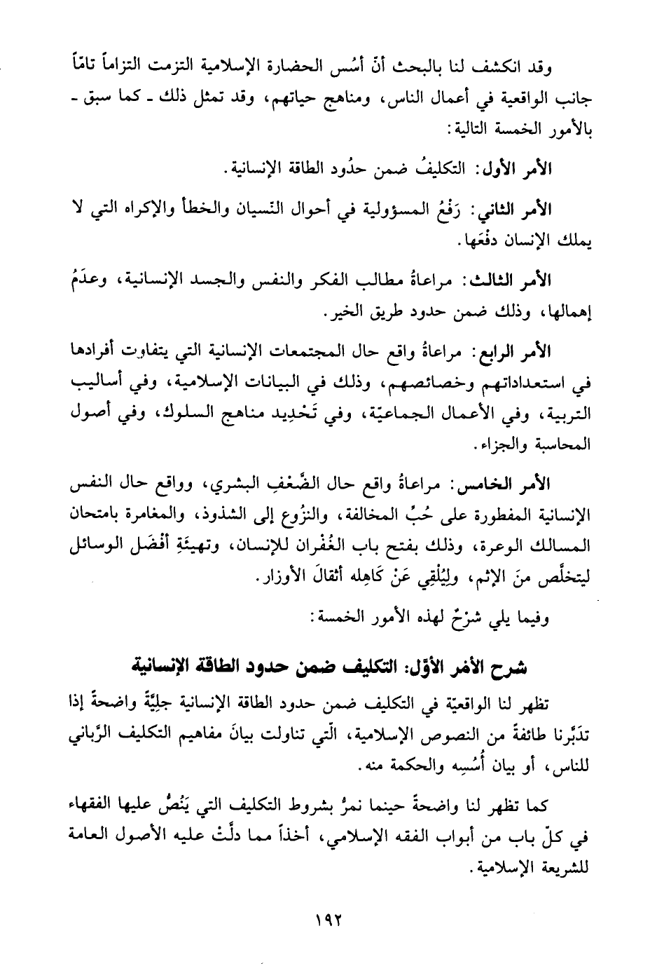 الأمر الأول: التكليف ضمن حدود الطاقة الإنسانية.
