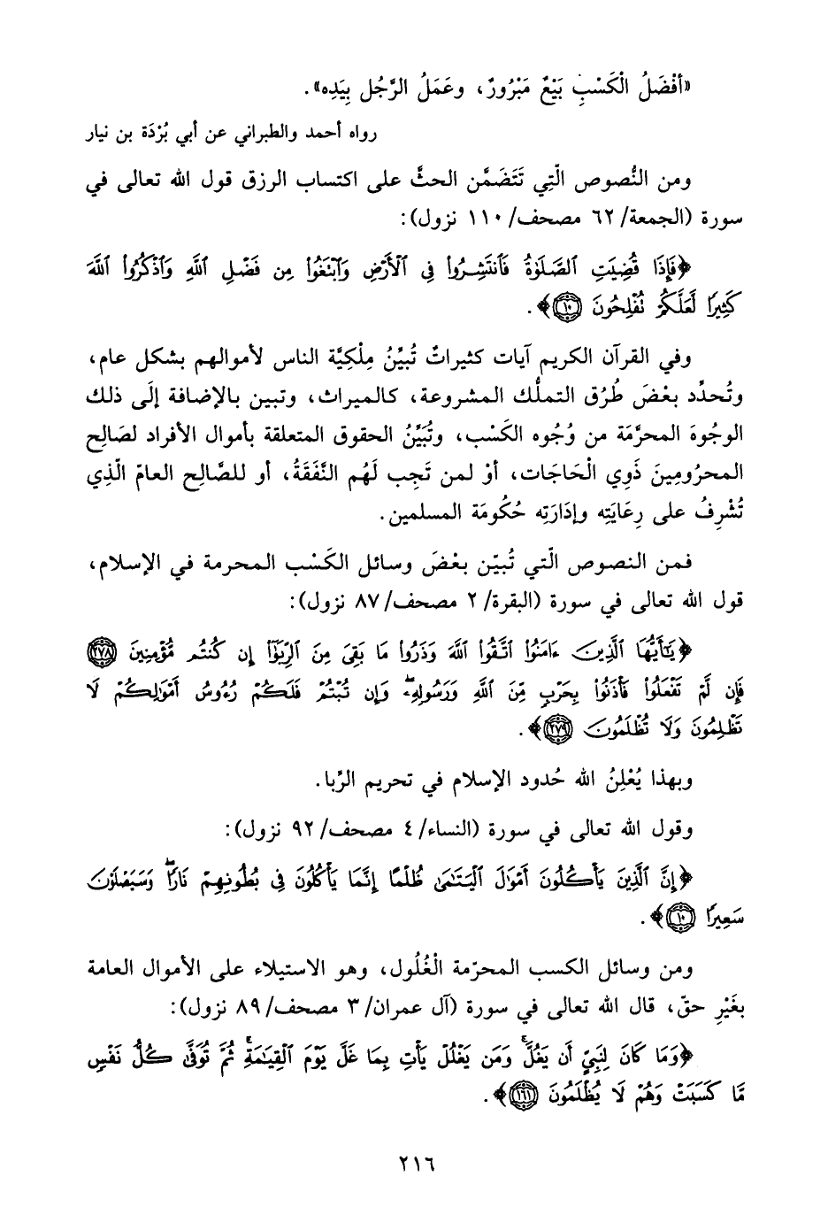 ومن النصوص التي تتضمن الحث على اكتساب الرزق قول الله تعالى في سورة "الجمعة: 62 مصحف/ 110 نزول":