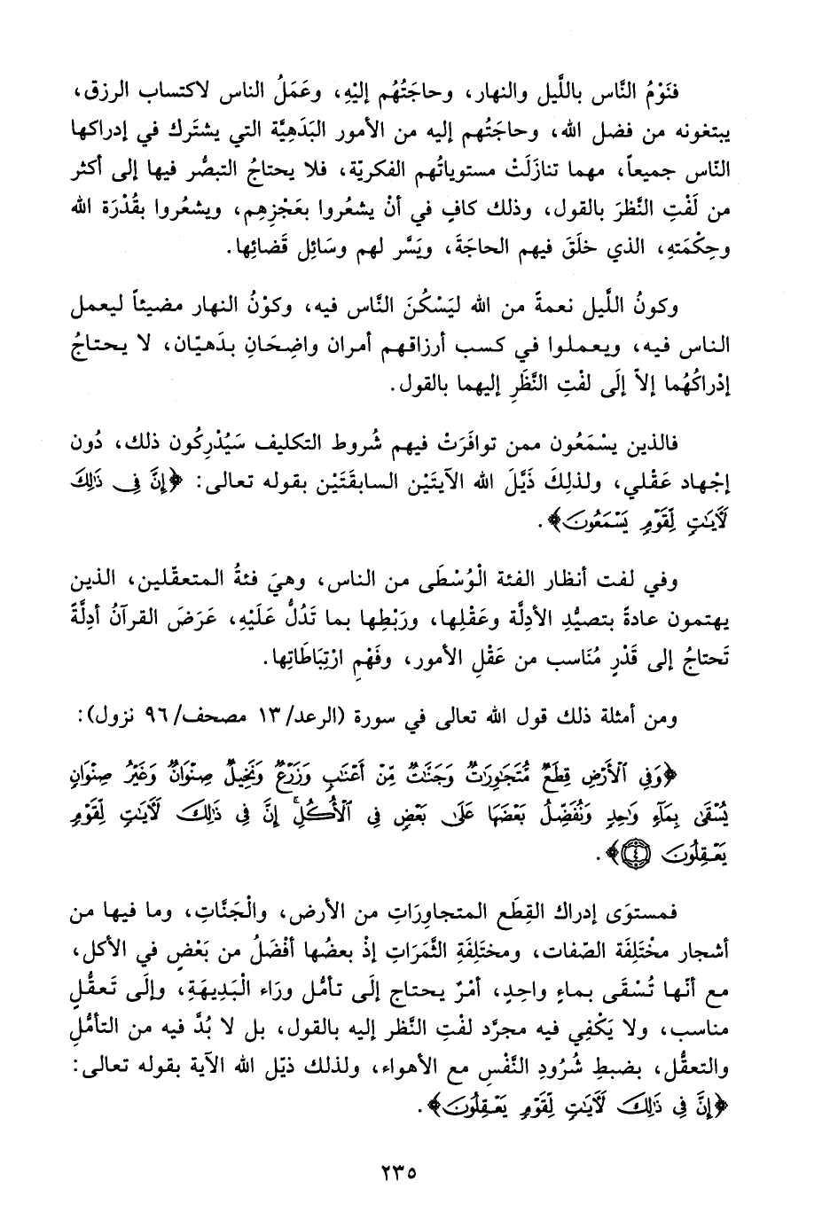 {وَفِي الْأَرْضِ قِطَعٌ مُتَجَاوِرَاتٌ وَجَنَّاتٌ مِنْ أَعْنَابٍ وَزَرْعٌ وَنَخِيلٌ صِنْوَانٌ وَغَيْرُ صِنْوَانٍ يُسْقَى بِمَاءٍ وَاحِدٍ وَنُفَضِّلُ بَعْضَهَا عَلَى بَعْضٍ فِي الْأُكُلِ إِنَّ فِي ذَلِكَ لَآيَاتٍ لِقَوْمٍ يَعْقِلُونَ} .