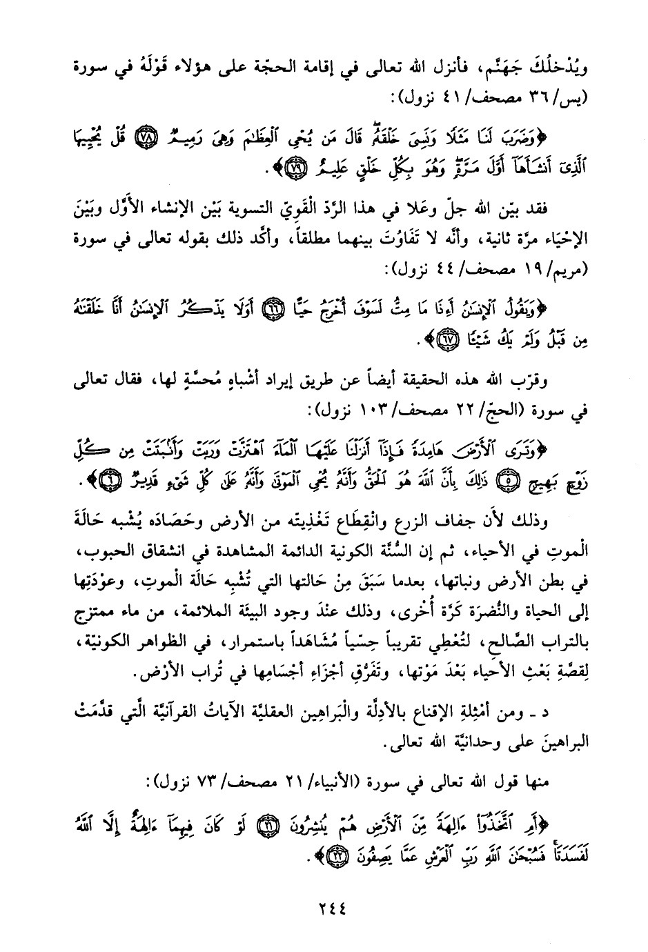 {أَمِ اتَّخَذُوا آلِهَةً مِنَ الْأَرْضِ هُمْ يُنْشِرُونَ، لَوْ كَانَ فِيهِمَا آلِهَةٌ إِلَّا اللَّهُ لَفَسَدَتَا فَسُبْحَانَ اللَّهِ رَبِّ الْعَرْشِ عَمَّا يَصِفُونَ} .