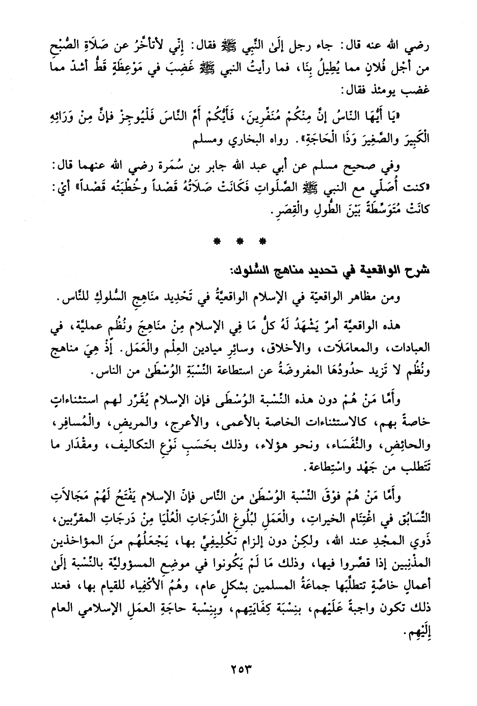 ومن مظاهر الواقعية في الإسلام الواقعية في تحديد مناهج السلوك للناس.