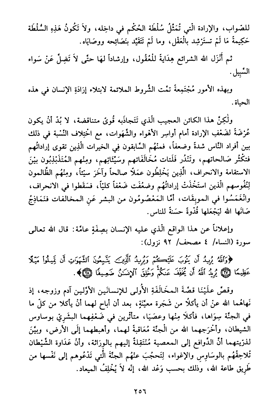ولكن هذا الكائن العجيب الذي تتجاذبه قوى متناقصة، لا بد أن يكون عرضة لضعف الإرادة أمام أواسر الأهواء والشهوات، مع اختلاف النسبة في ذلك بين أفراد الناس شدة وضعفًا، فمنهم السابقون في الخيرات الذين تقوى إرادتهم فتكثر صالحاتهم، وتندر فلتات مخالفاتهم وسيئاتهم، ومنهم المتذبذبون بين الاستقامة والانحراف، الذين يخلطون عملًا صالحًا وآخر سيئًا، ومنهم الظالمون لنفوسهم الذين استخذت إرادتهم وضعفت ضعفًا كليًّا، فسقطوا في الانحراف، وانغمسوا في الموبقات، أما المعصومون من البشر عن المخالفات فنماذج صانها الله ليجعلها قدوة حسنة للناس.