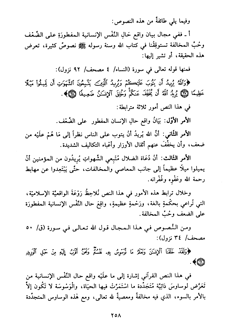 وخلال ترابط هذه الأمور في هذا النص نلاحظ روعة الواقعية الإسلامية، التي تراعي بحكمة بالغة، ورحمة عظيمة، واقع حال النفس الإنسانية المفطورة على الضعف وحب المخالفة.