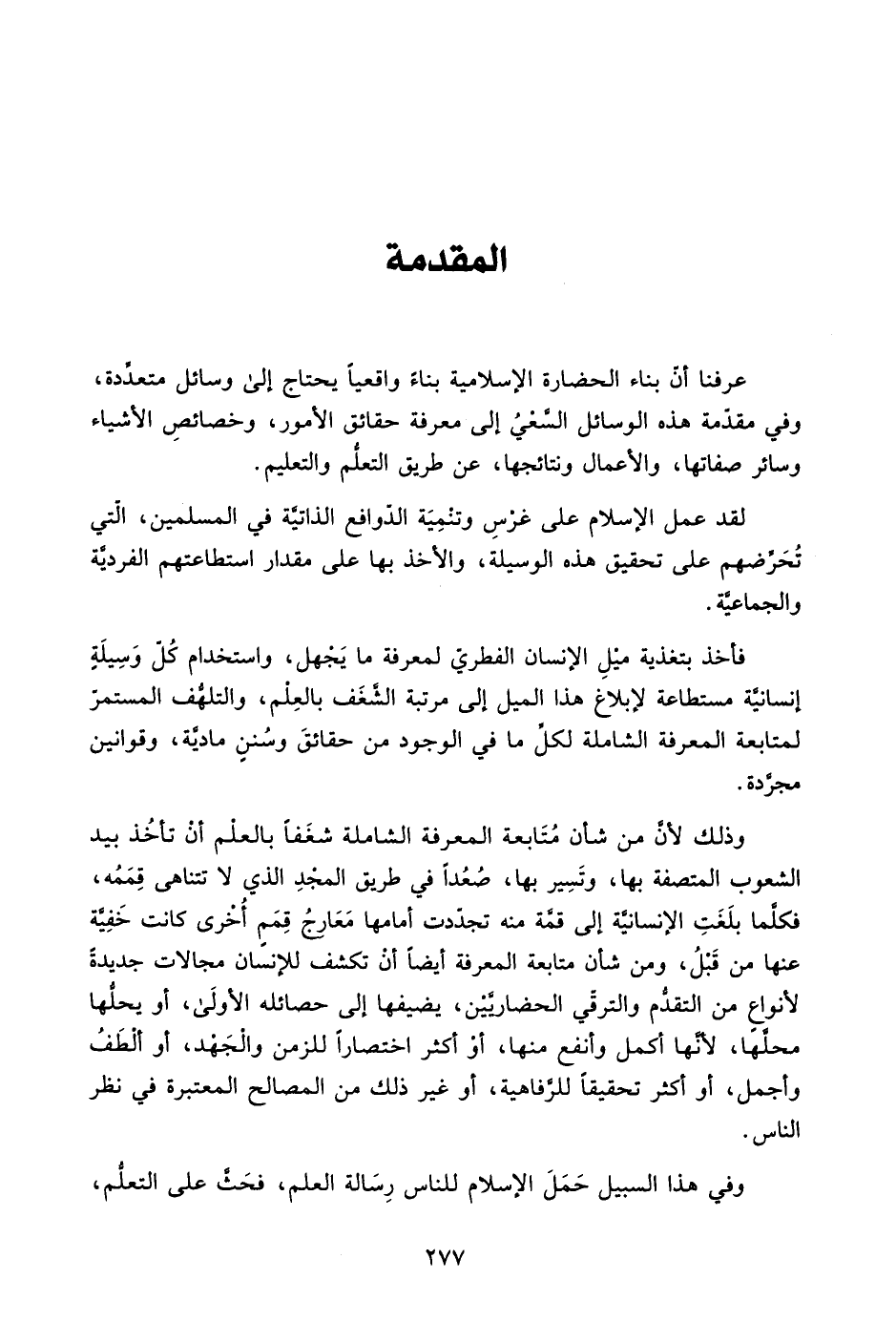 وذلك لأن من شأن متابعة المعرفة الشاملة شغفًا بالعلم أن تأخذ بيد الشعوب المتصفة بها، وتسير بها، صعدًا في طريق المجد الذي لا تتناهى قممه، فكلما بلغت الإنسانية إلى قمة منه تجددت أمامها معارج قمم أخرى كانت خفية عنها من قبل، ومن شأن متابعة المعرفة أيضًا أن تكشف للإنسان مجالات جديدة لأنواع من التقدم والترقي الحضاريين، يضيفها إلى حصائله الأولى، أو يحلها ملحها؛ لأنها أكمل وأنفع منها، أو أكثر اختصارًا للزمن والجهد، أو ألطف وأجمل، أو أكثر تحقيقًا للرفاهية، أو غير ذلك من المصالح المعتبرة في نظر الناس.