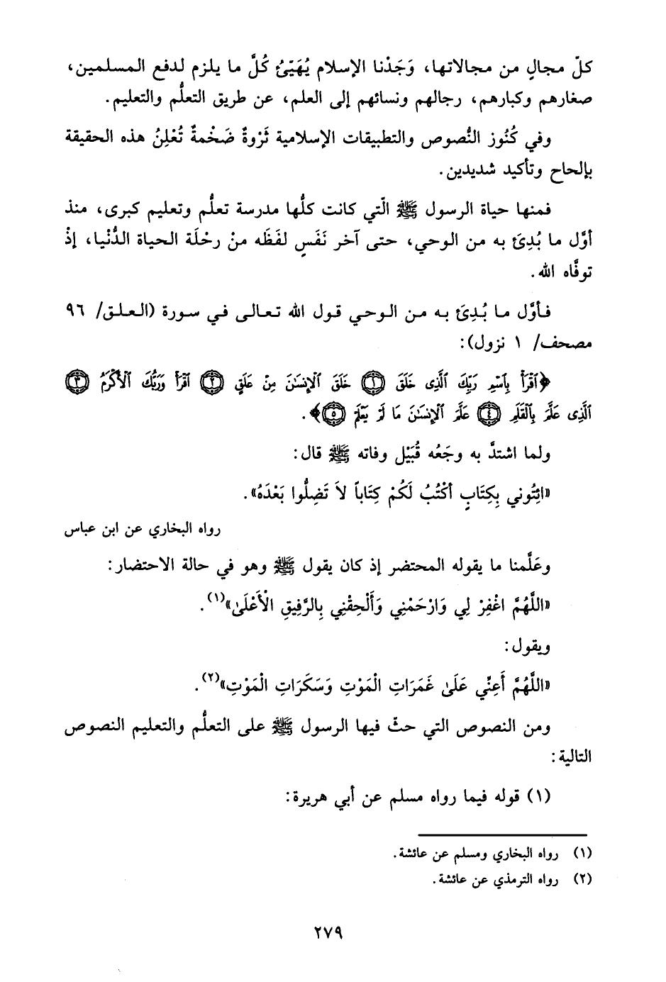 المقولة الأولى: الدفع الإسلامي إلى التعلم والتعليم