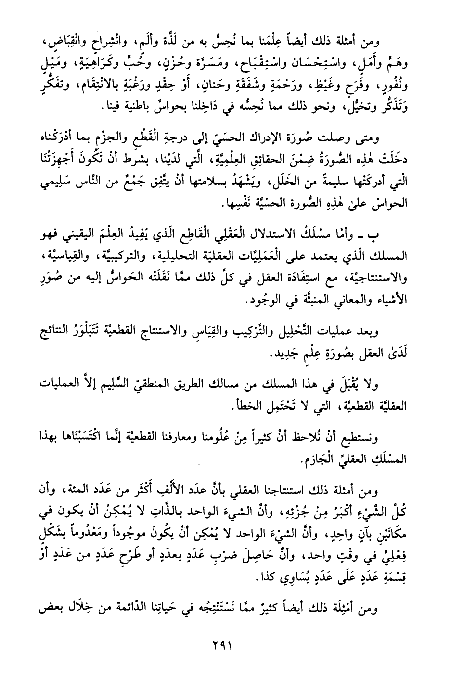 ونستطيع أن نلاحظ أن كثيرًا من علومنا ومعارفنا القطعية إنما اكتسبناها بهذا المسلك العقلي الجازم.
