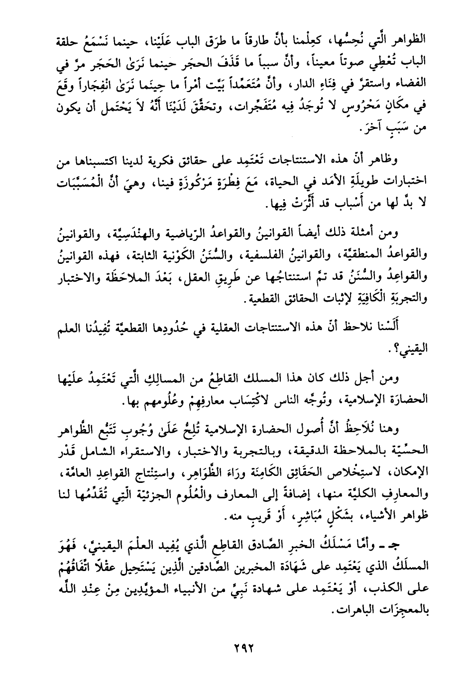 ألسنا نلاحظ أن هذه الاستنتاجات العقلية في حدودها القطعية تفيدنا العلم اليقيني؟