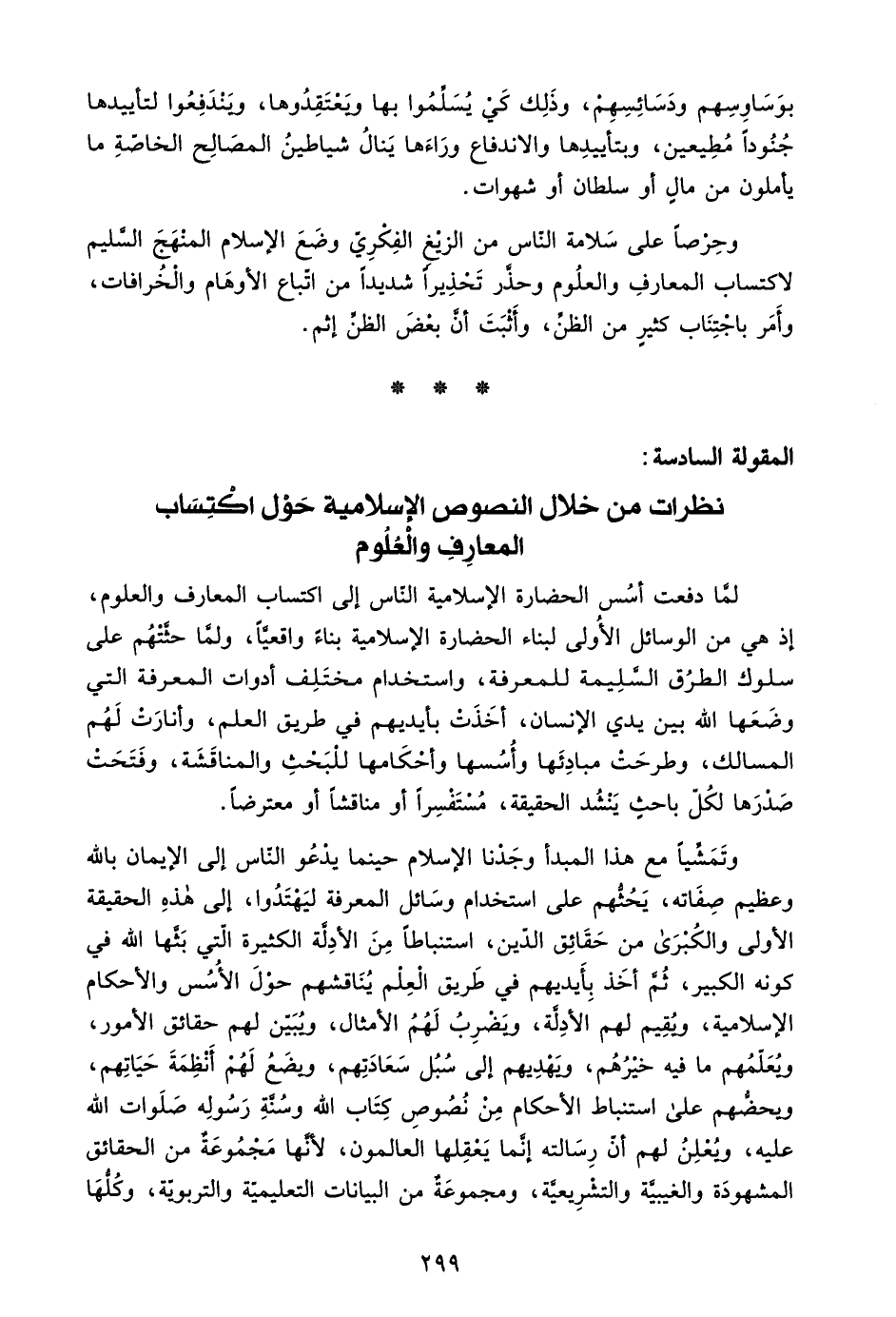 المقولة السادسة: نظرات من خلال النصوص الإسلامية حول اكتساب المعارف والعلوم