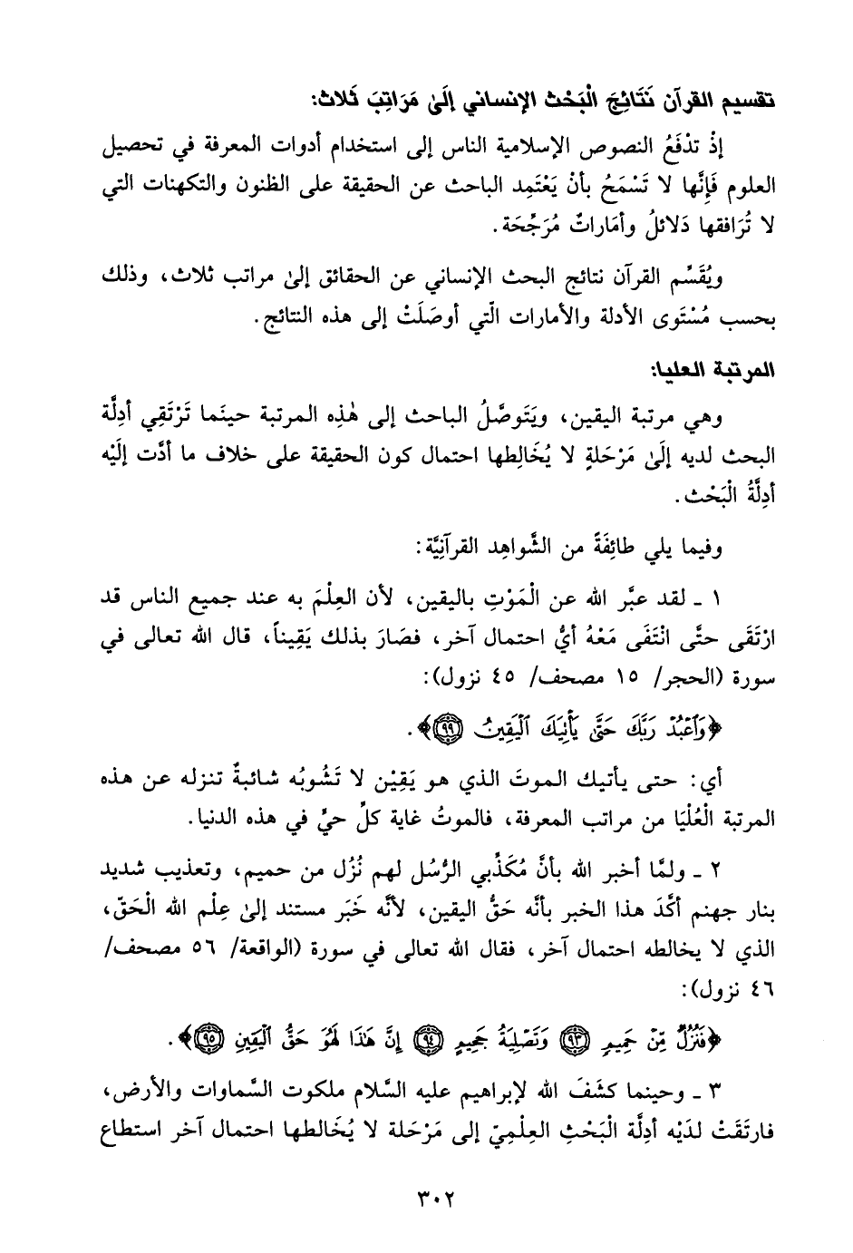 تقسيم القرآن نتائج البحث الإنساني إلى مراتب ثلاث:
