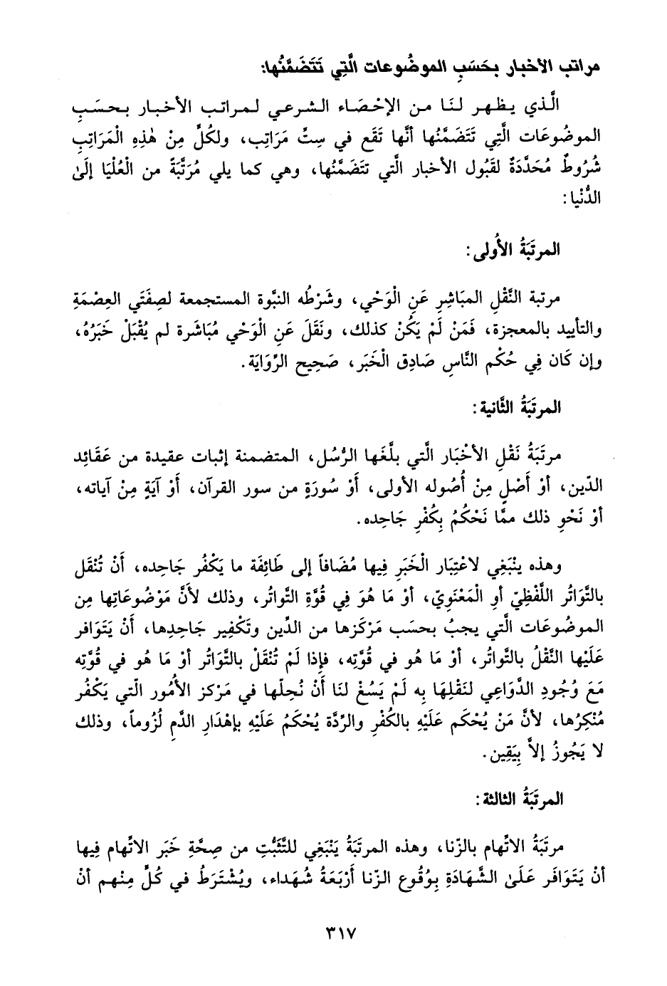 مرتبة نقل الأخبار التي بلغها الرسل، المتضمنة إثبات عقيدة من عقائد الدين، أو أصل من أصوله الأولى، أو سورة من سور القرآن، أو آية من آياته، أو نحو ذلك مما نحكم بكفر جاحده.