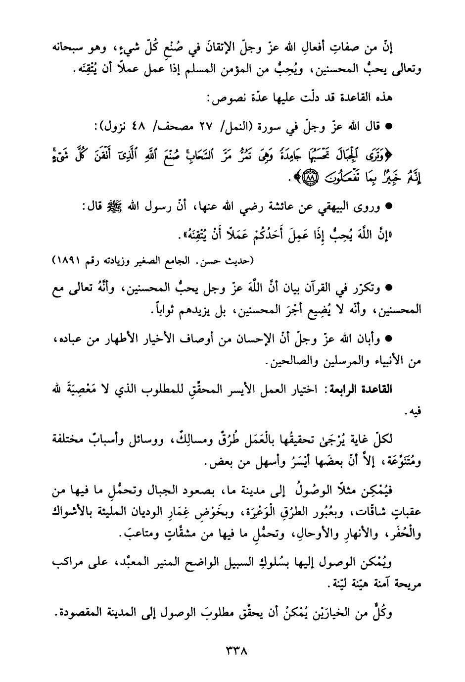 القاعدة الرابعة: اختيار العمل الأيسر المحقق للمطلوب الذي لا معصية لله فيه.