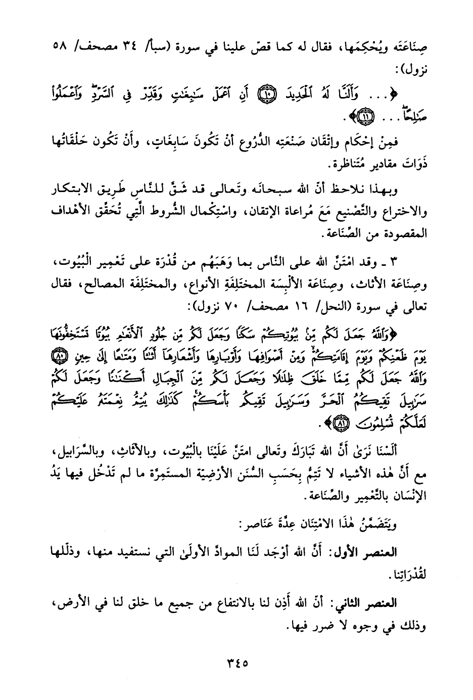 ألسنا نرى أن الله تبارك وتعالى أمتن علينا بالبيوت، وبالأثاث، وبالسرابيل، مع أن هذه الأشياء لا تتم بحسب السنن الأرضية المستمرة ما لم تدخل فيها يد الإنسان بالتعمير والصناعة.