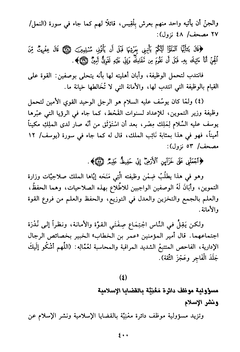 4- مسئولية موظف دائرة معنية بالقضايا الإسلامية ونشر الإسلام: