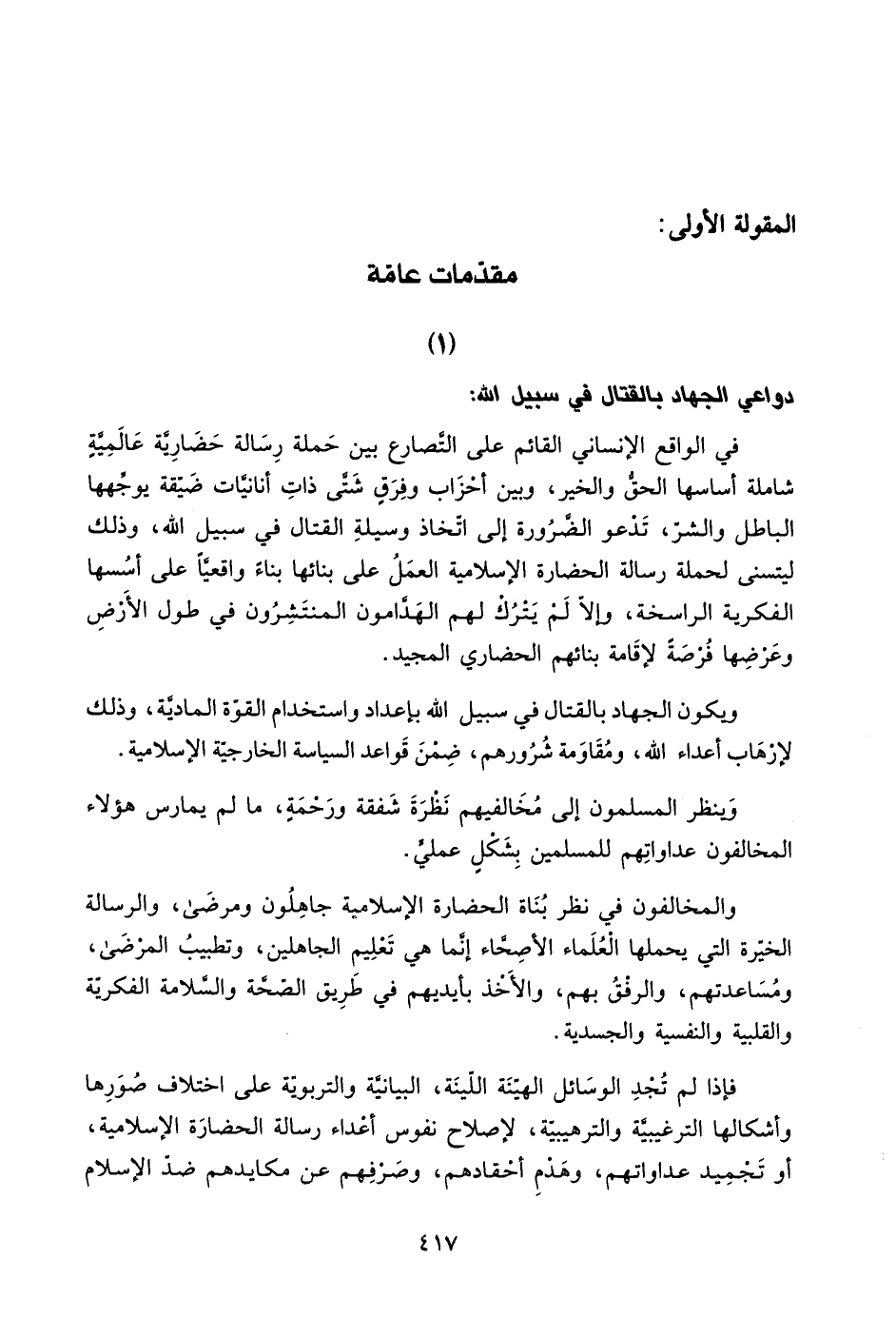 1- دواعي الجهاد بالقتال في سبيل الله: