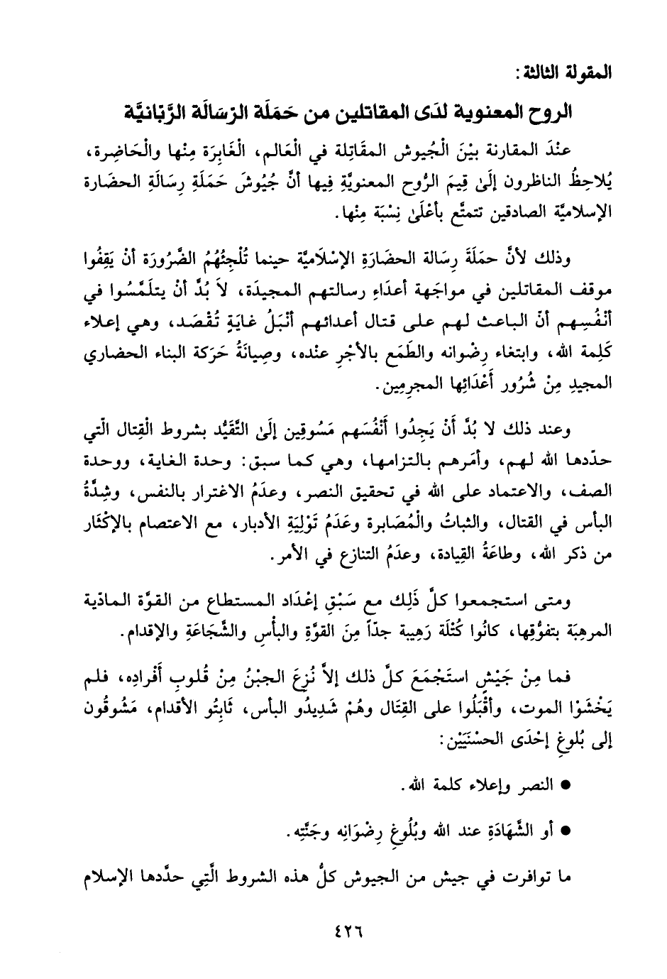 المقولة الثالثة: الروح المعنوية لذي المقاتلين من حملة الرسالة الربانية