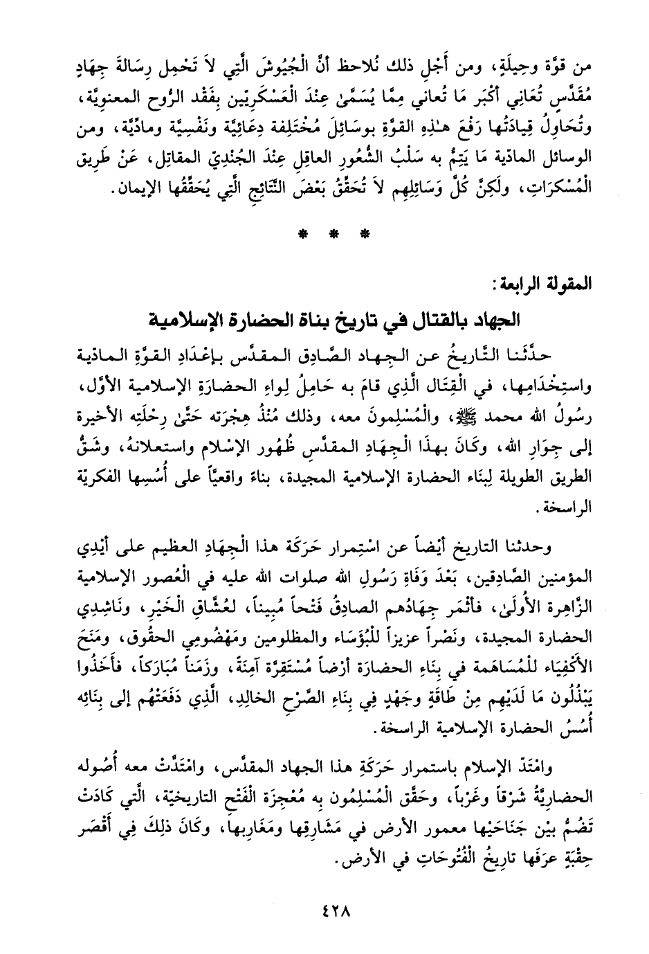 المقولة الرابعة: الجهاد بالقتال في تاريخ بناة الحضارة الإسلامية