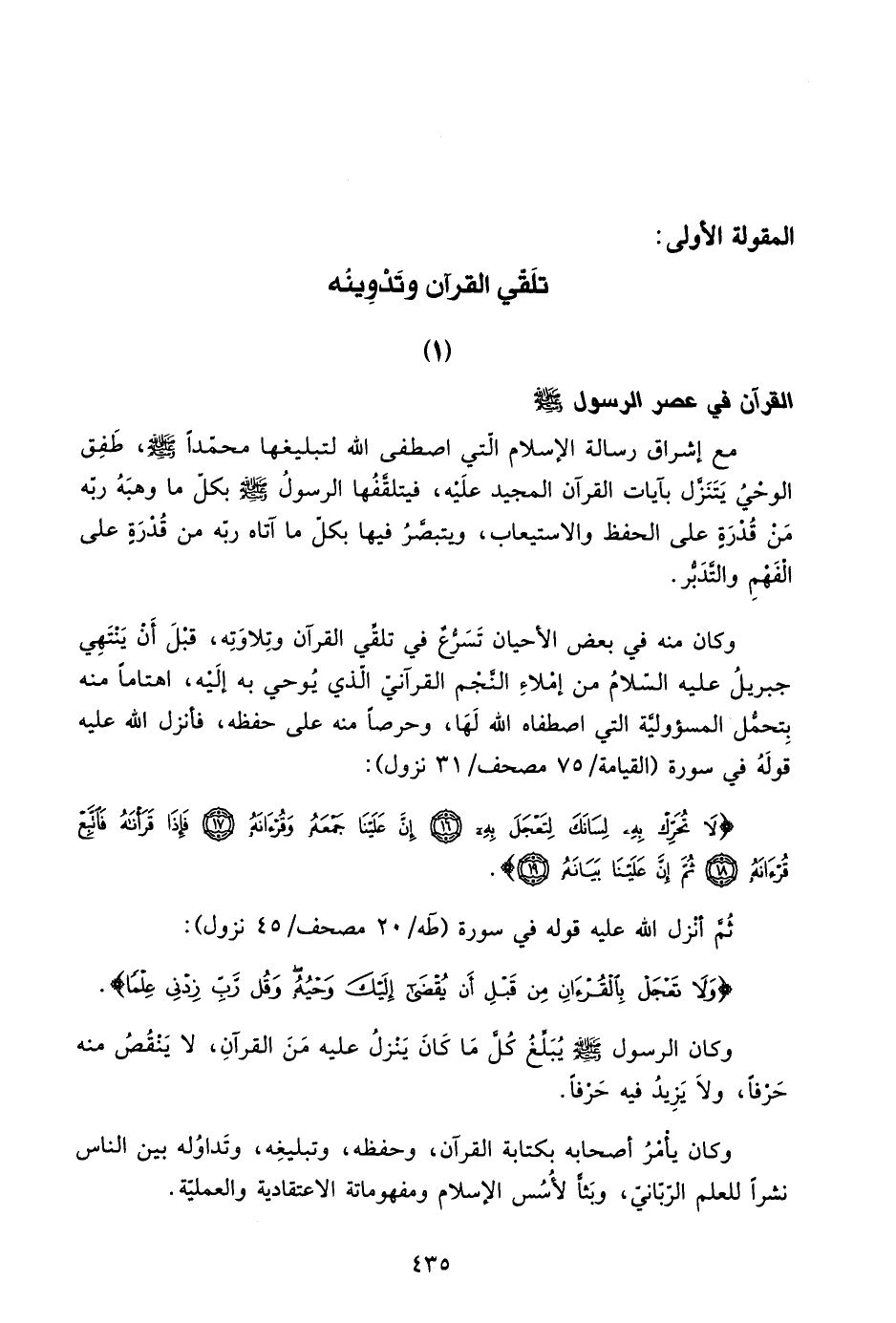الفصل الأول: تلقي القرآن وتدوينه وتدبره