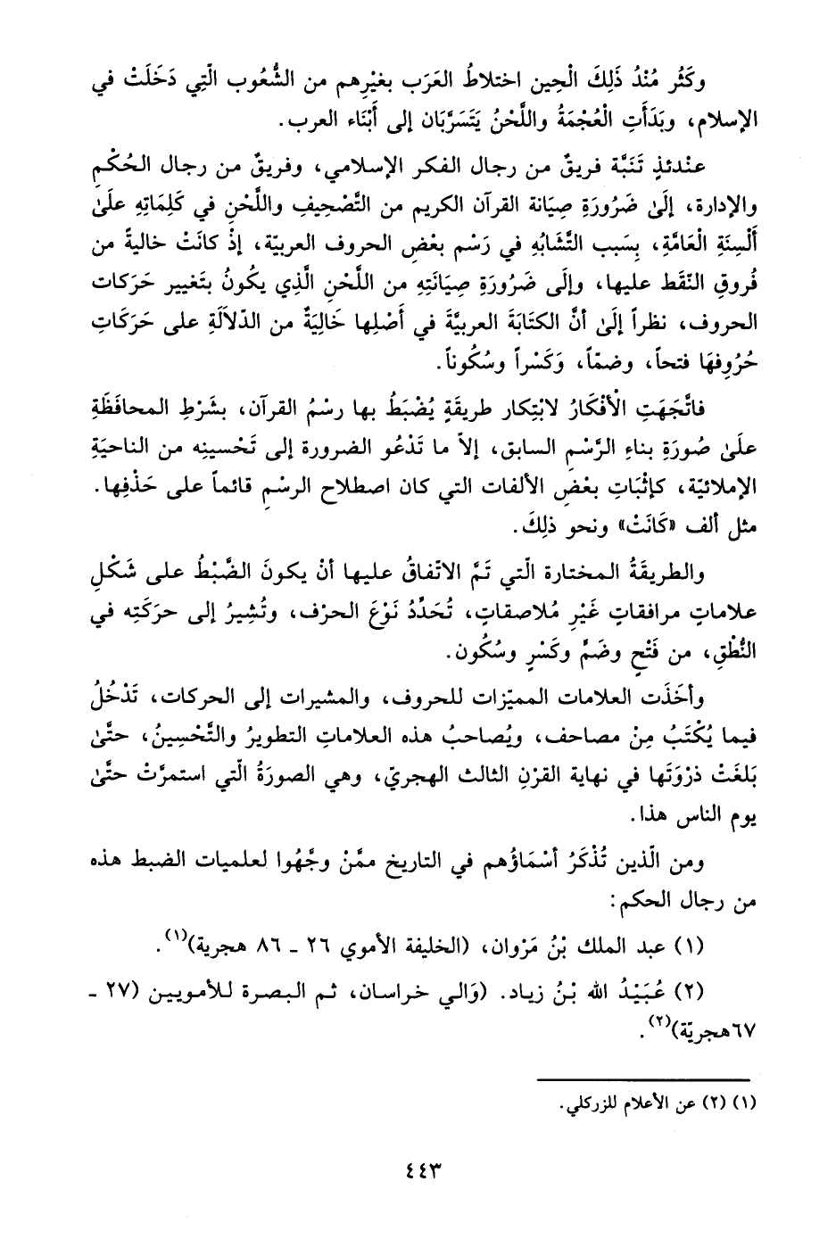 وعندئذ تنبه فريق من رجال الفكر الإسلامي، وفريق من رجال الحكم والإدارة، إلى ضرورة صيانة القرآن الكريم من التصحيف واللحن في كلماته على ألسنة العامة، بسبب التشابه في رسم بعض الحروف العربية؛ إذ كانت خالية من فروق النقط عليها، وإلى ضرورة صيانته من اللحن الذي يكون بتغيير حركات الحروف، نظرًا إلى أن الكتابة العربية في أصلها خالية من الدلالة على حركات حروفها فتحًا، وضمًّا، وكسرًا وسكونًا.