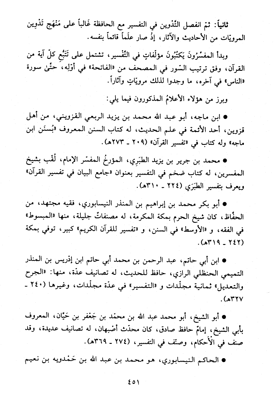 - ابن ماجه، أبو عبد الله محمد بن يزيد الربعي القزويني، من أهل قزوين، أحد الأئمة في علم الحديث، له كتاب السنن المعروف "بسنن ابن ماجه" وله كتاب في "تفسير القرآن" "209-273هـ".