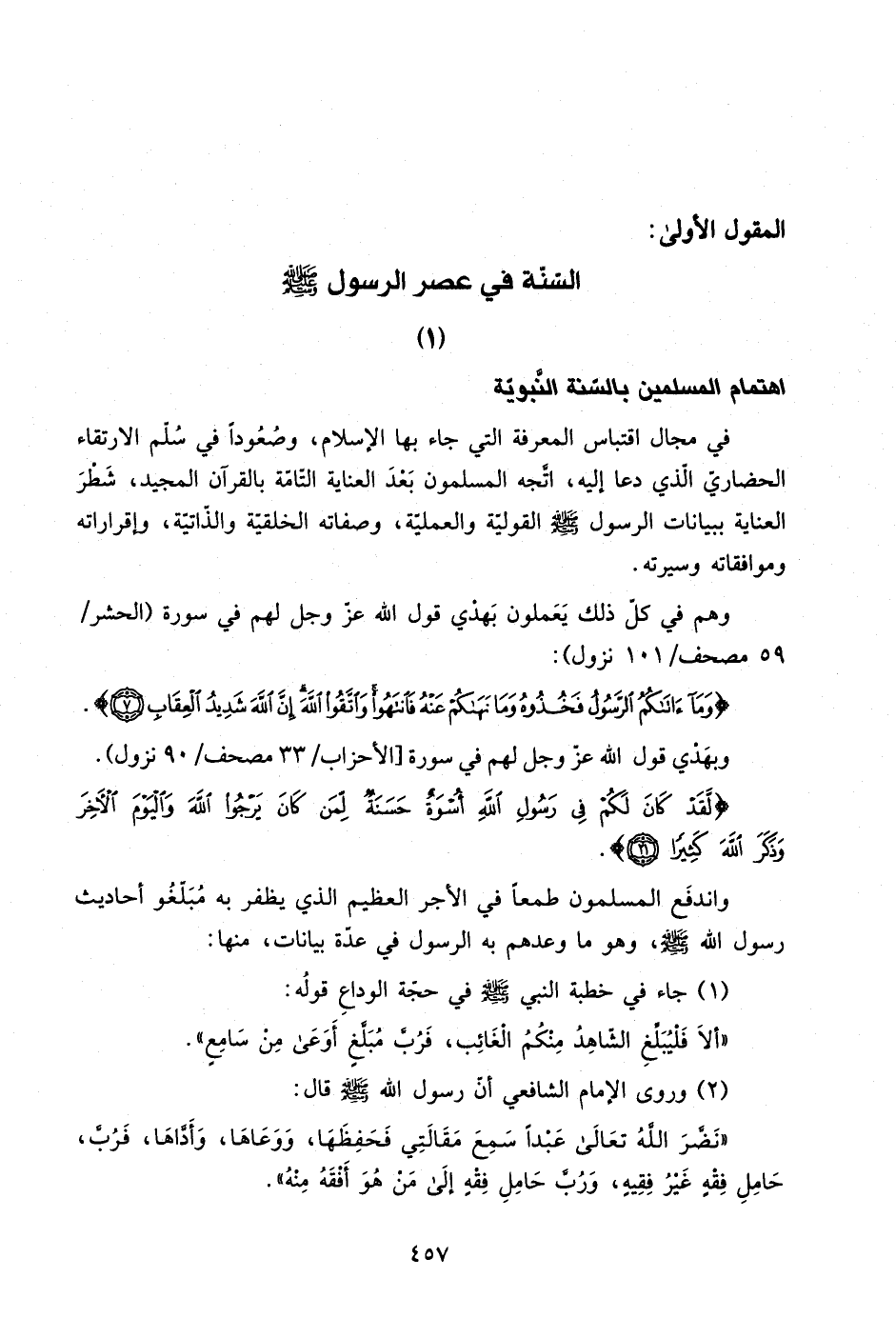 المقول الأولى: السنة في عصر الرسول صلى الله عليه وسلم
