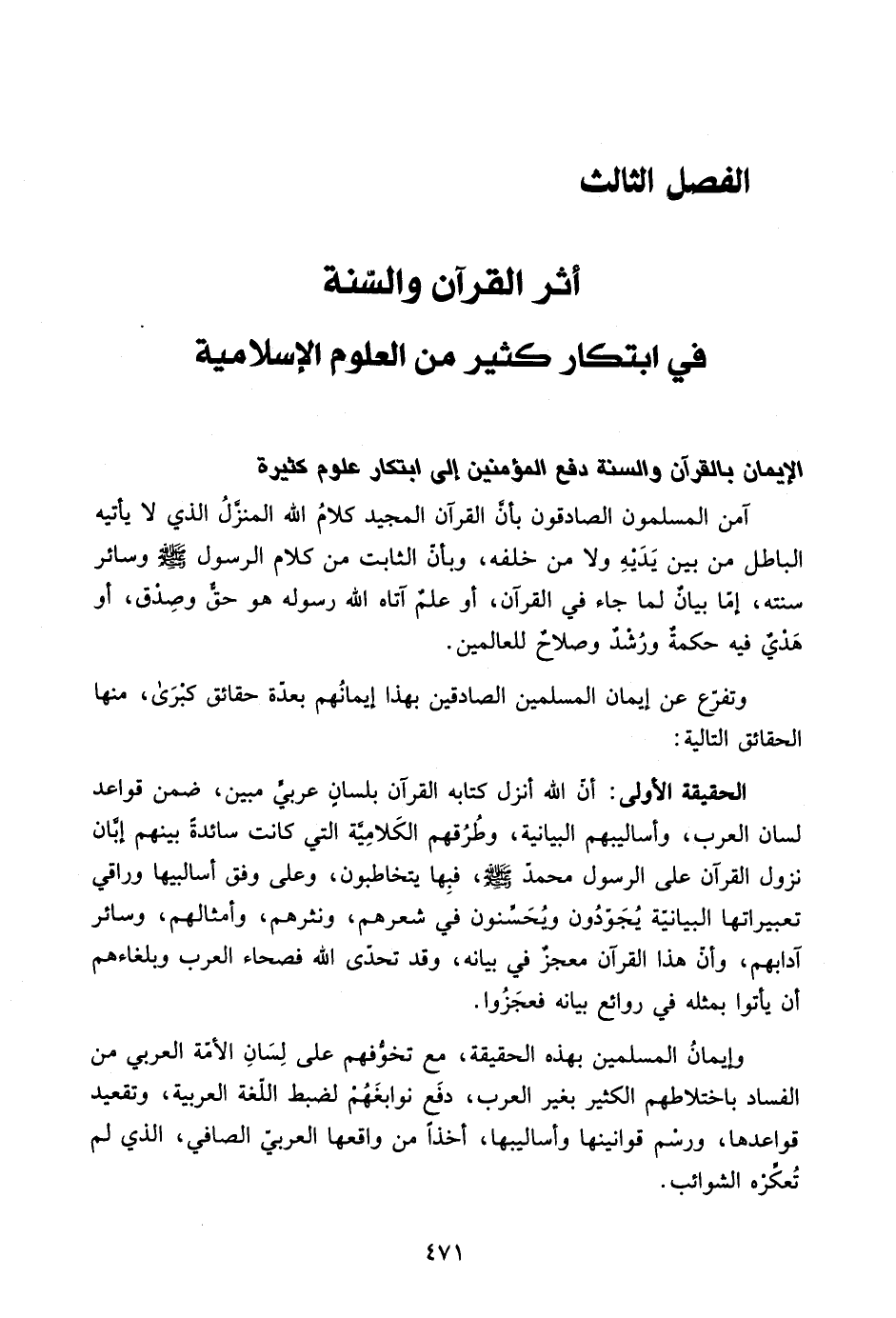 الفصل الثالث: أثر القرآن والسنة في ابتكار كثير من العلوم الإسلامية