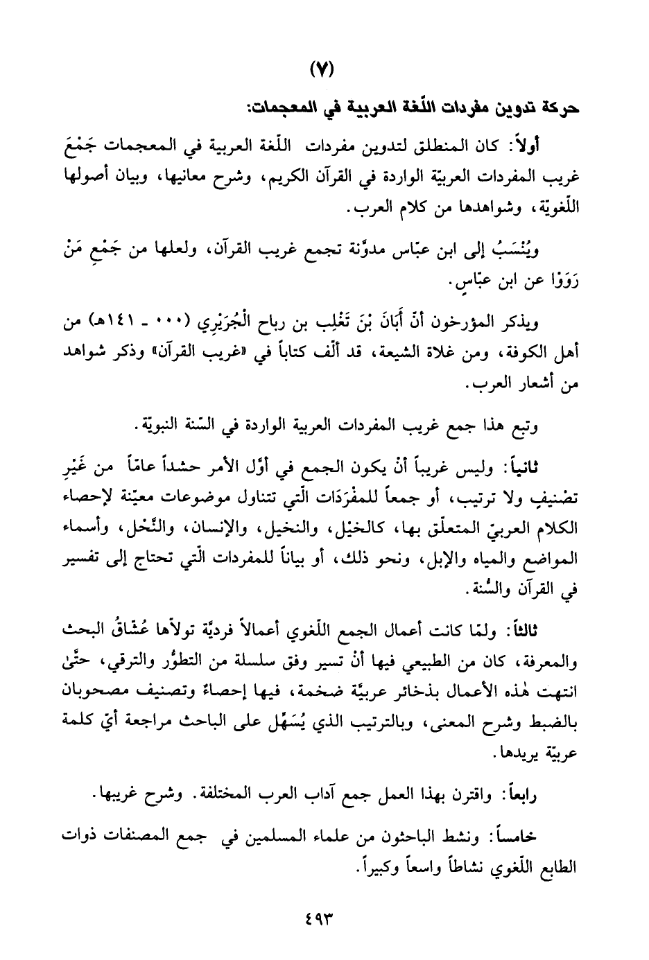 7- حركة تدوين مفردات اللغة العربية في المعجمات: