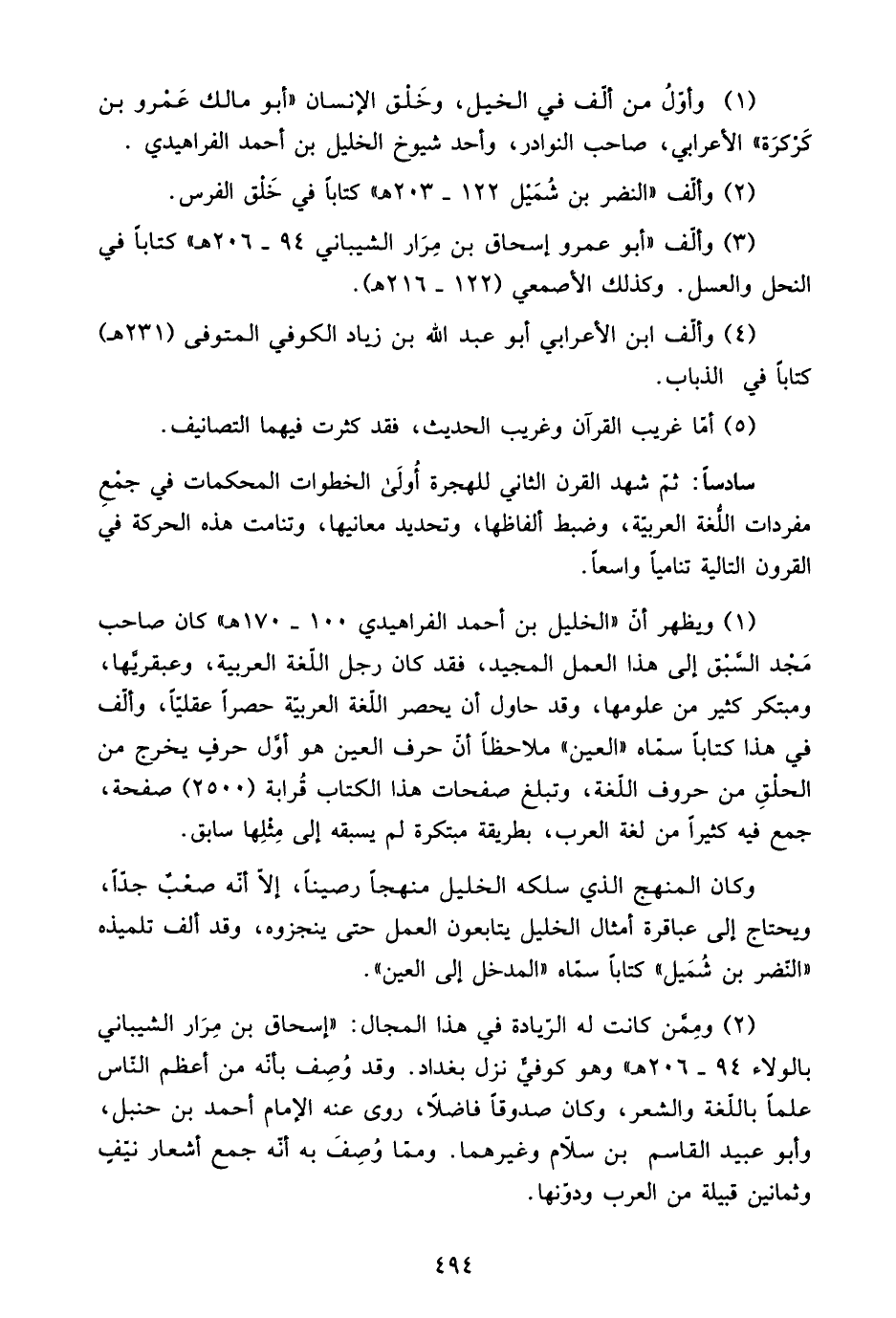 سادسًا: ثم شهد القرن الثاني للهجرة أولى الخطوات المحكمات في جمع مفردات اللغة العربية، وضبط ألفاظها، وتحديد معانيها، وتنامت هذه الحركة في القرون التالية تناميًا واسعًا.