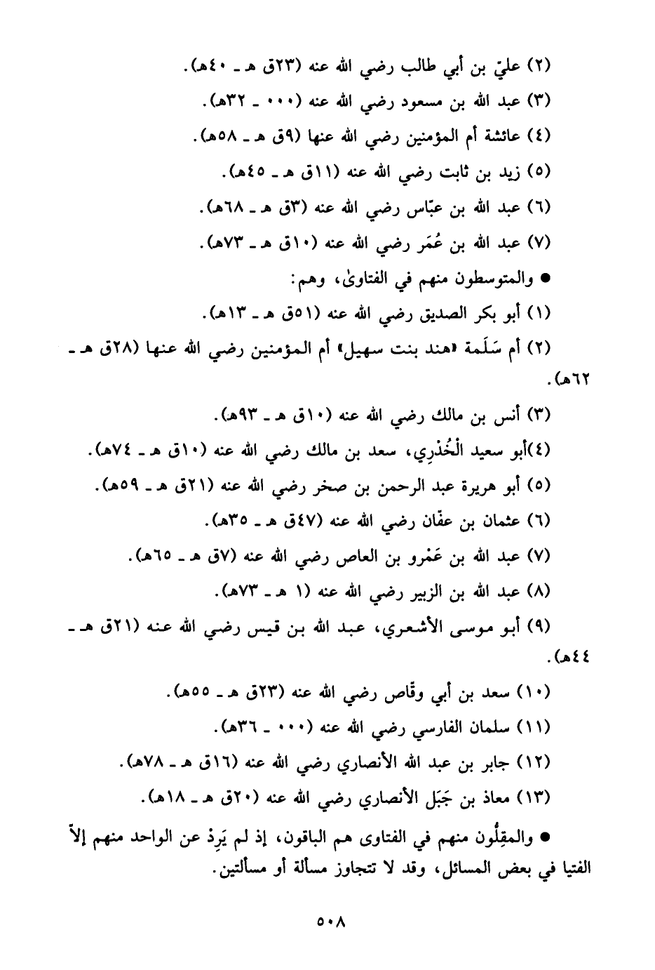 - والمقلون منهم في الفتاوى هم الباققون؛ إذ لم يرد عن الواحد منهم إلا الفتيا في بعض المسائل، وقد لا تتجاوز مسألة أو مسألتين.